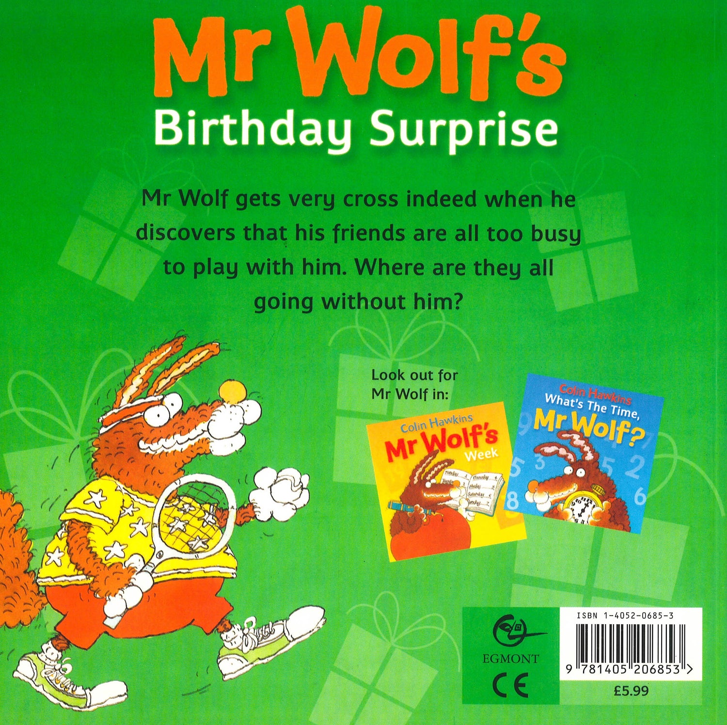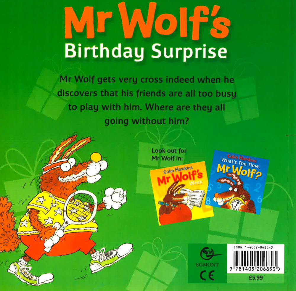What's the time Mr. Wolf; Tell the time with Mr Wolf as he goes through the day. But watch out for him at mealtimes! Mr Wolf's Birthday Surprise; Mr. Wolf gets very cross indeed when he discovers that his friends are all too busy to play with him. Where are they all going without him? Mr Wolf's Week; Learn the days of the week with Mr. Wolf as he dresses up and sets off each day on another hilarious adventure.