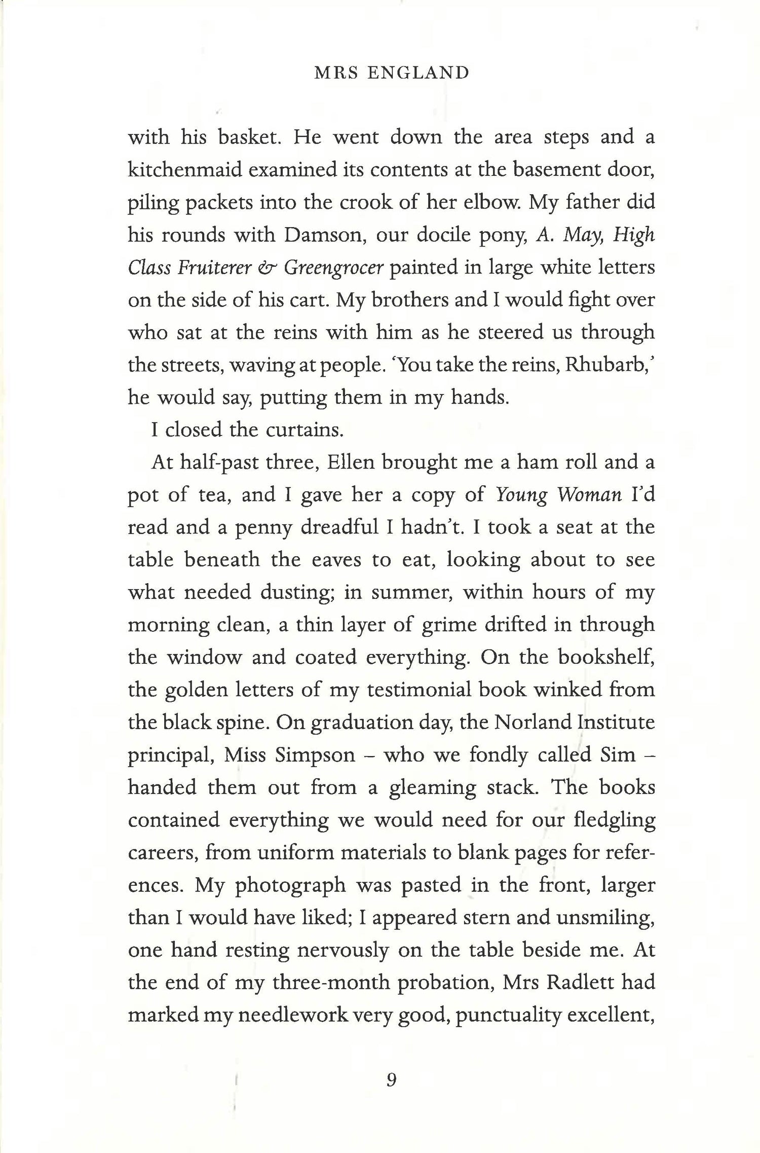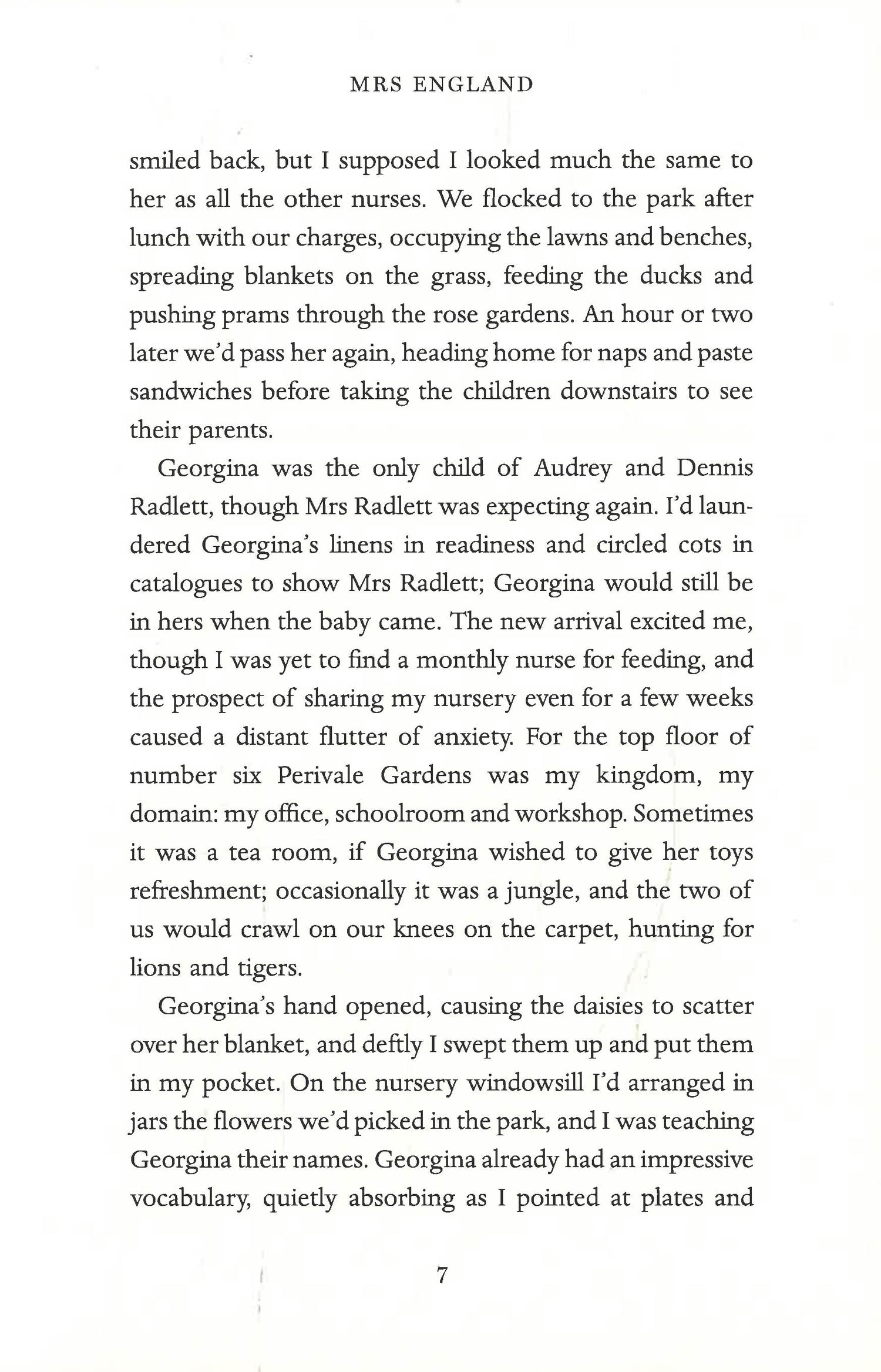 West Yorkshire, 1904. When newly graduated nurse Ruby May takes a position looking after the children of Charles and Lilian England, a wealthy couple from a powerful dynasty of mill owners, she hopes it will be the fresh start she needs. But as she adapts to life at the isolated Hardcastle House, it becomes clear there's something not quite right about the beautiful, mysterious Mrs England.