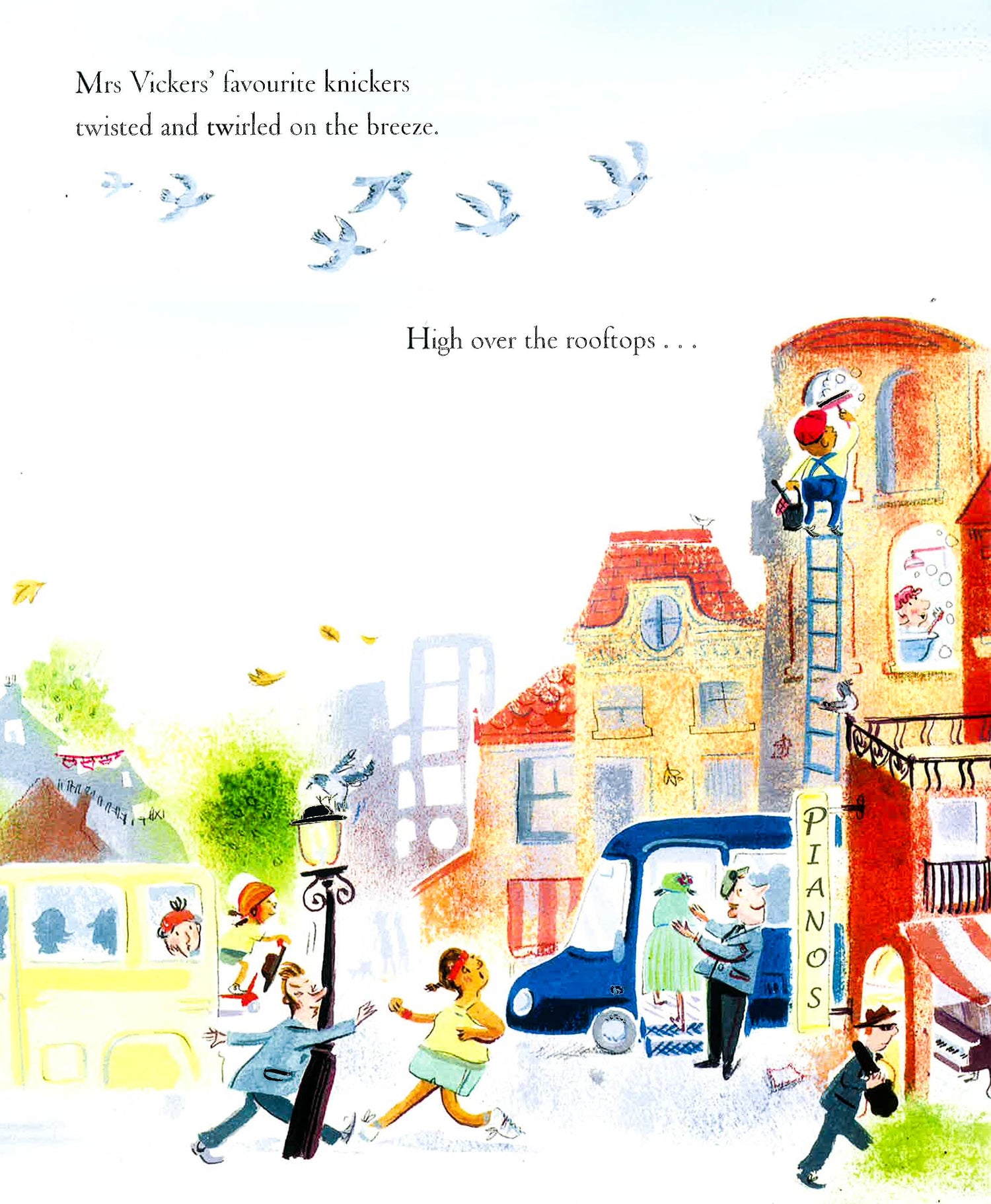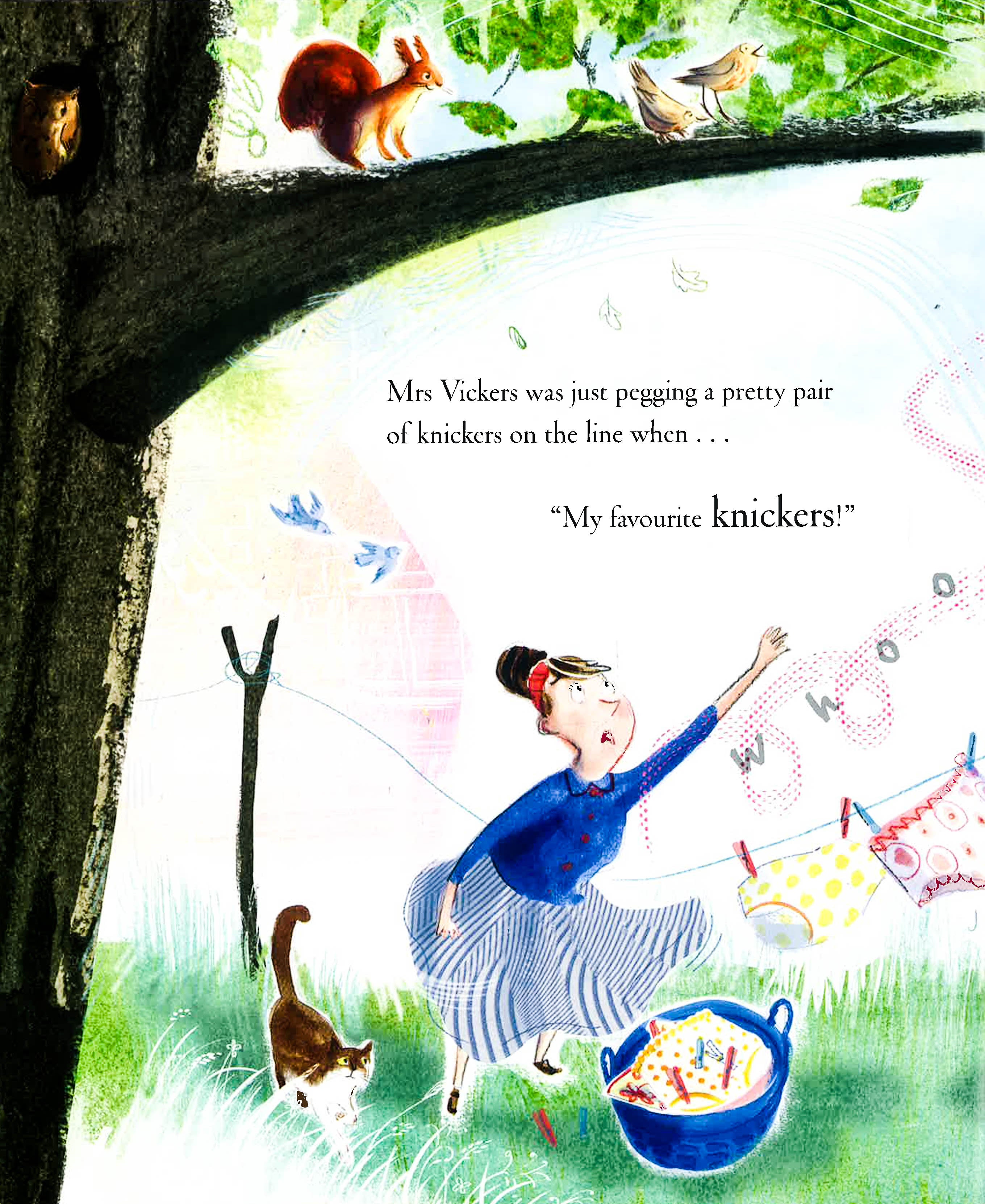Mrs Vickers is just pegging out her favourite knickers when - whoosh - they are caught in a gust of wind and fly away. That's the end of them, thinks Mrs Vickers. But she is wrong. This is just the beginning . . .