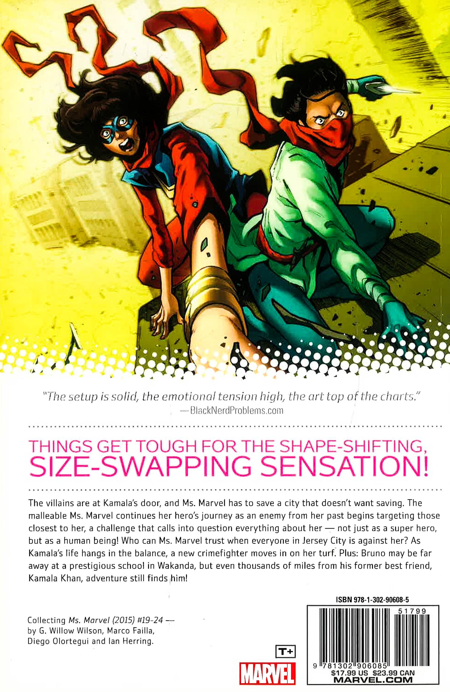 An enemy from Ms. Marvel's past resurfaces and begins targeting those closest to Kamala. As the world around her is spinning out of control, it becomes clear that this time there's something more sinister at work...Kamala's no stranger to fighting for what's right, but in facing down this challenge, everything she is will be called into question. Not just as a super hero, but as a human being. COLLECTING: MS. MARVEL 19-24
