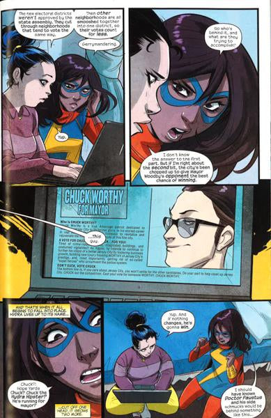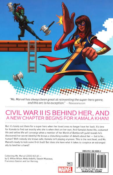Civil War II is behind her, and a brand new chapter for Kamala Khan is about to begin! But it's lonely out there for a super hero when her loved ones no longer have her back. It's time for Kamala to find out exactly who she is when she is on her own. Plus: it's election time! Kamala gets out the vote! COLLECTING: MS. MARVEL 13-18