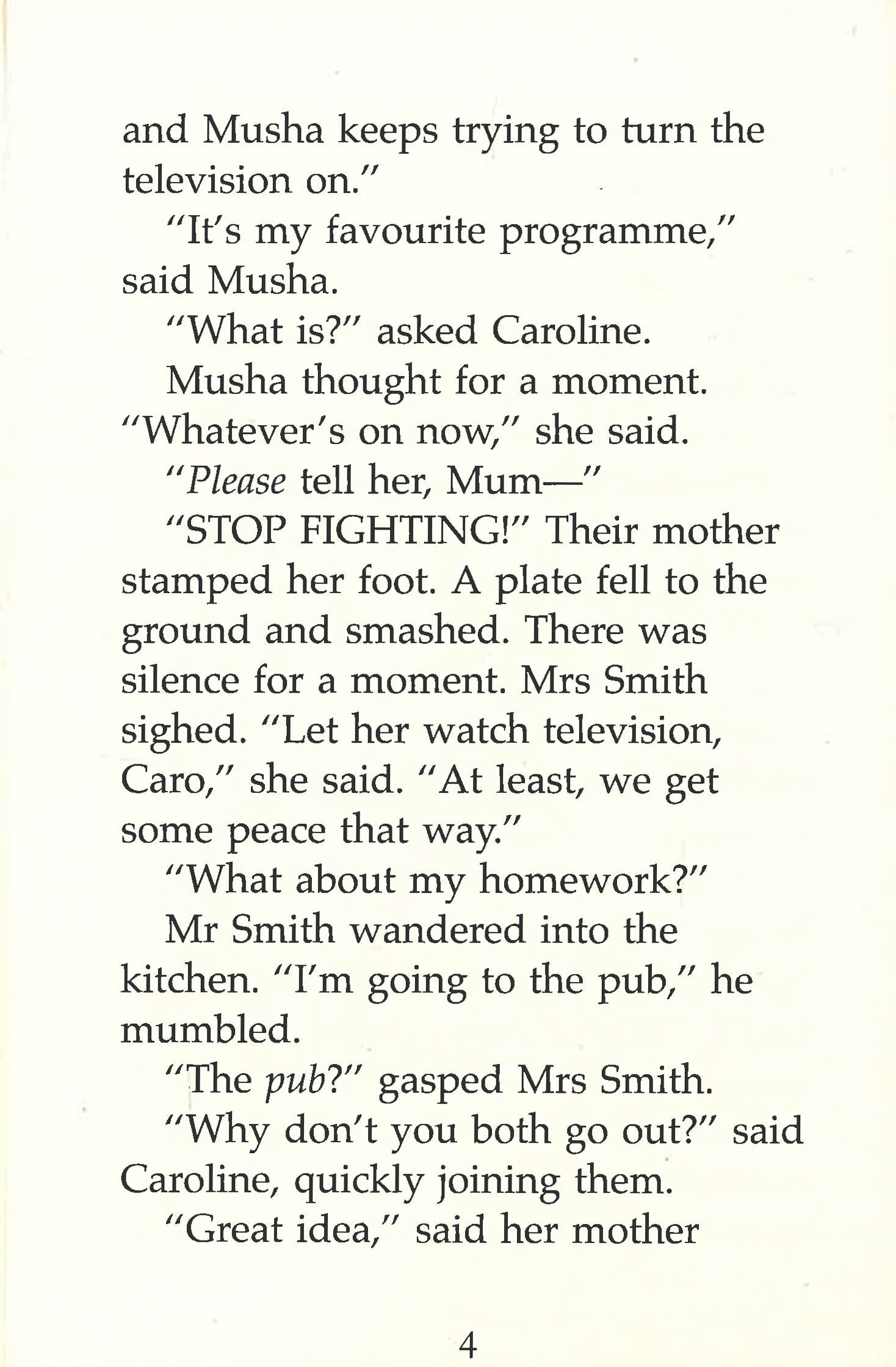 Caroline and Little Musha are babysat by Ms Wiz - and they go INTO the TV!