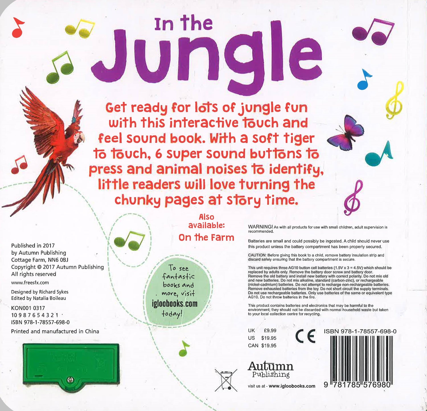 Get ready for lots of jungle fun with this interactive touch and feel sound book. With a soft tiget to touch, 6 super sound buttons to press and animal noises to identify, little readers will love turning the chunky pages at story time.