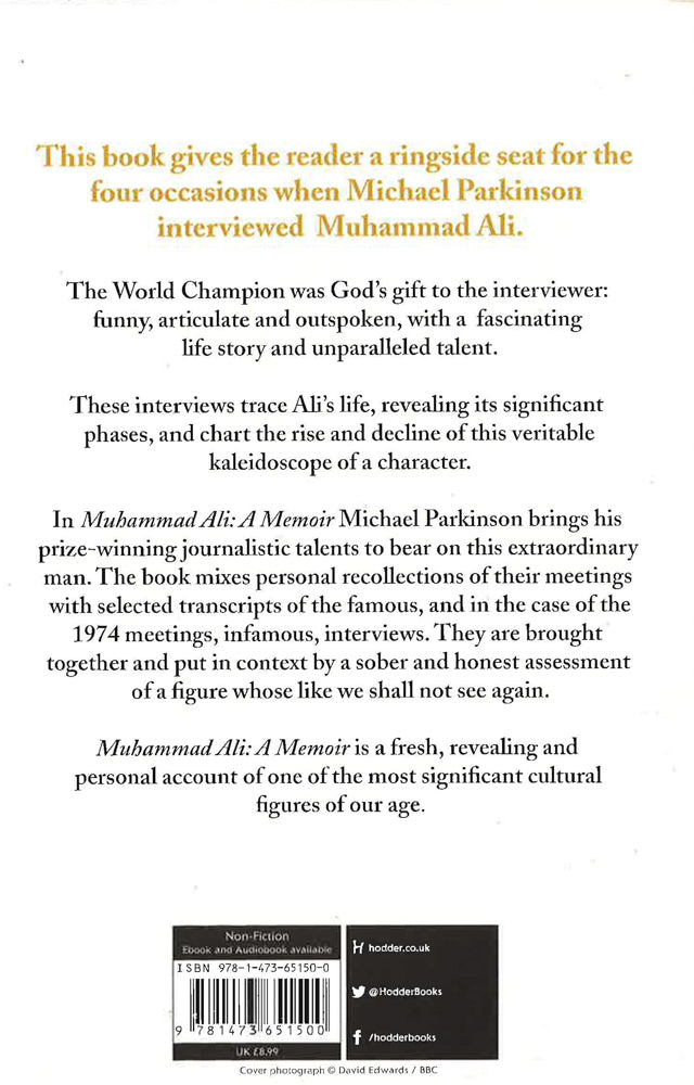 Michael Parkinson reflects on the life of boxing icon Muhammad Ali'A riveting read about an amazing man' THE SUNLegendary boxer Muhammad Ali visited Michael Parkinson's chat show sofa four times, culminating in an iconic interview in 1971. Muhammad Ali: A Memoir is a fresh, revealing and personal account of the life of the most important and enduring cultural figures of our age. An icon of boxing who has inspired the biggest names in boxing, from Mike Tyson to Anthony Joshua, this is the story of boxing's biggest star. Muhammad Ali was God's Gift to the interviewer. Funny, articulate, outspoken with a fascinating life story, unparalleled talent and controversial views. These 4 interviews charted Ali's life, revealing significant phases at different times, charting the rise and fall of this kaleidoscope of a man.In Muhammad Ali: A Memoir Sir Michael Parkinson will bring his award-winning journalistic talents to bear on this extraordinary man. The book will mix personal recollections of the times they met with selected transcripts of the famous and, in the case of the 1974 meeting, infamous interviews all brought together and contextualised by a sober and honest assessment of the life and times of a figure that, it is certain, we will never see the like of again.