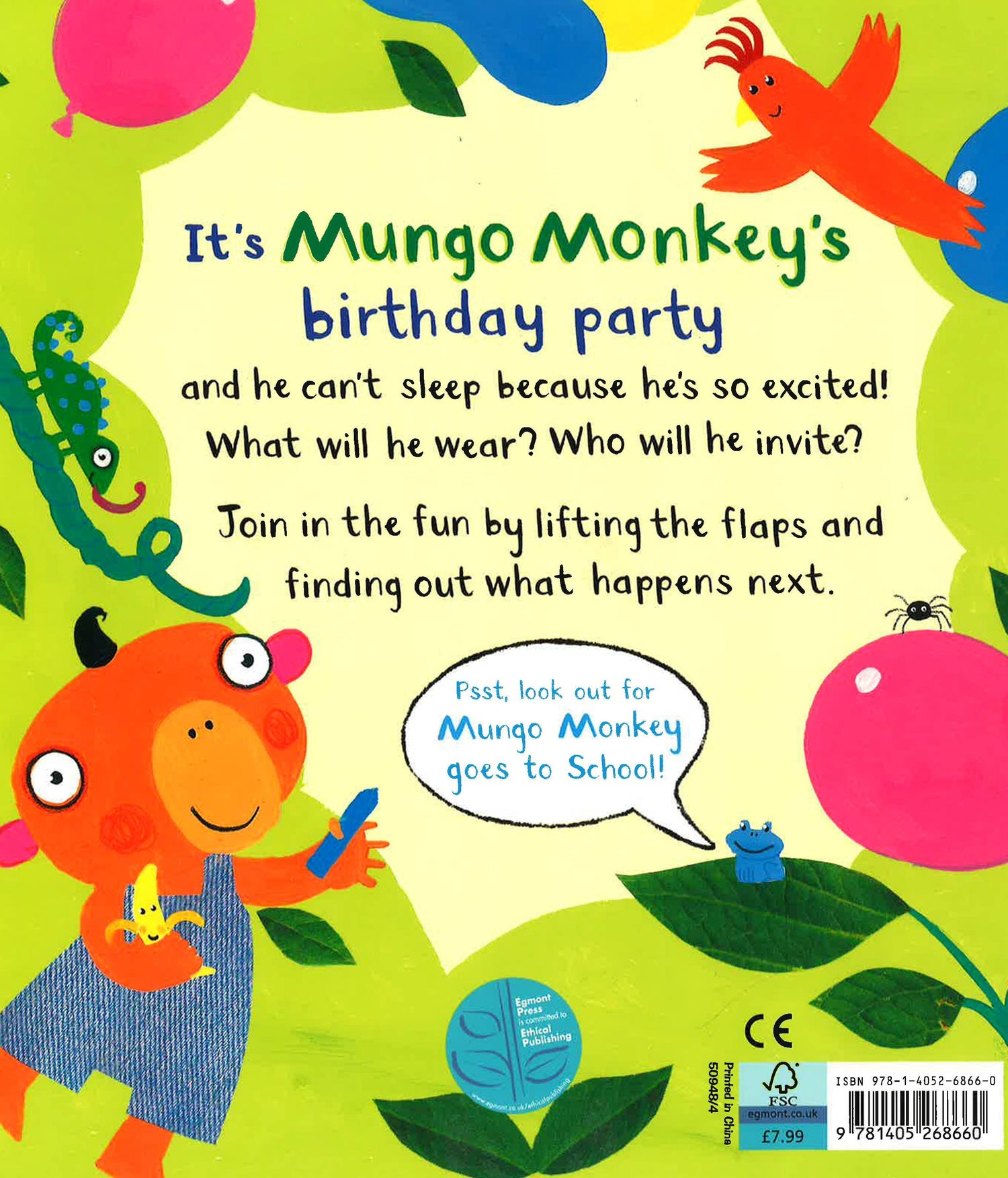 Mungo Monkey has woken up very early . . . because today is his BIRTHDAY! There are so many things to do before Mungo's birthday party starts: balloons to blow up, party hats to make and a cake to bake. Mungo needs to pick his fancy dress costume, too. What will he choose? Lift the flaps and join in the party preparations with Mungo, his friends and his favourite toy Narnie. Mungo Monkey comes from the genius of Lydia Monks, award-winning illustrator whose collaborations include What the Ladybird Heard and The Princess and the Wizard with Julia Donaldson and the `Indie Kidd' series with Karen McCombie. Mungo Monkey's beautiful illustrations with flaps to lift on every page make for an interactive reading experience that is perfect for children aged 3 and up.