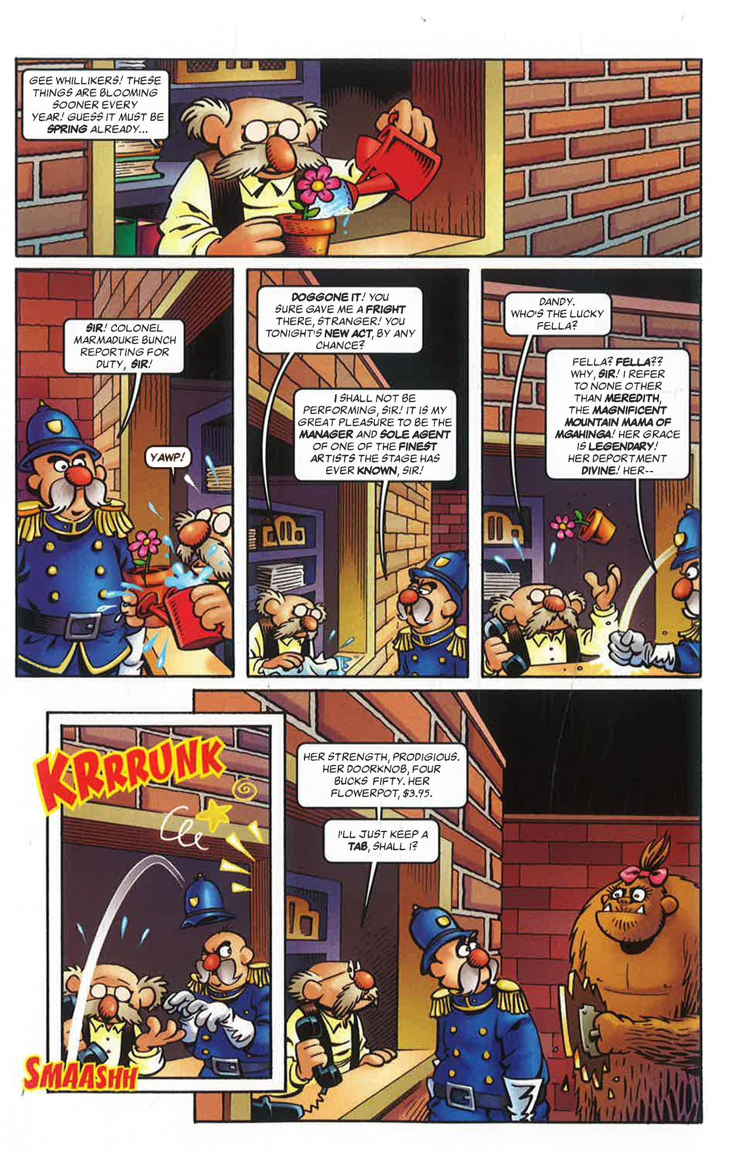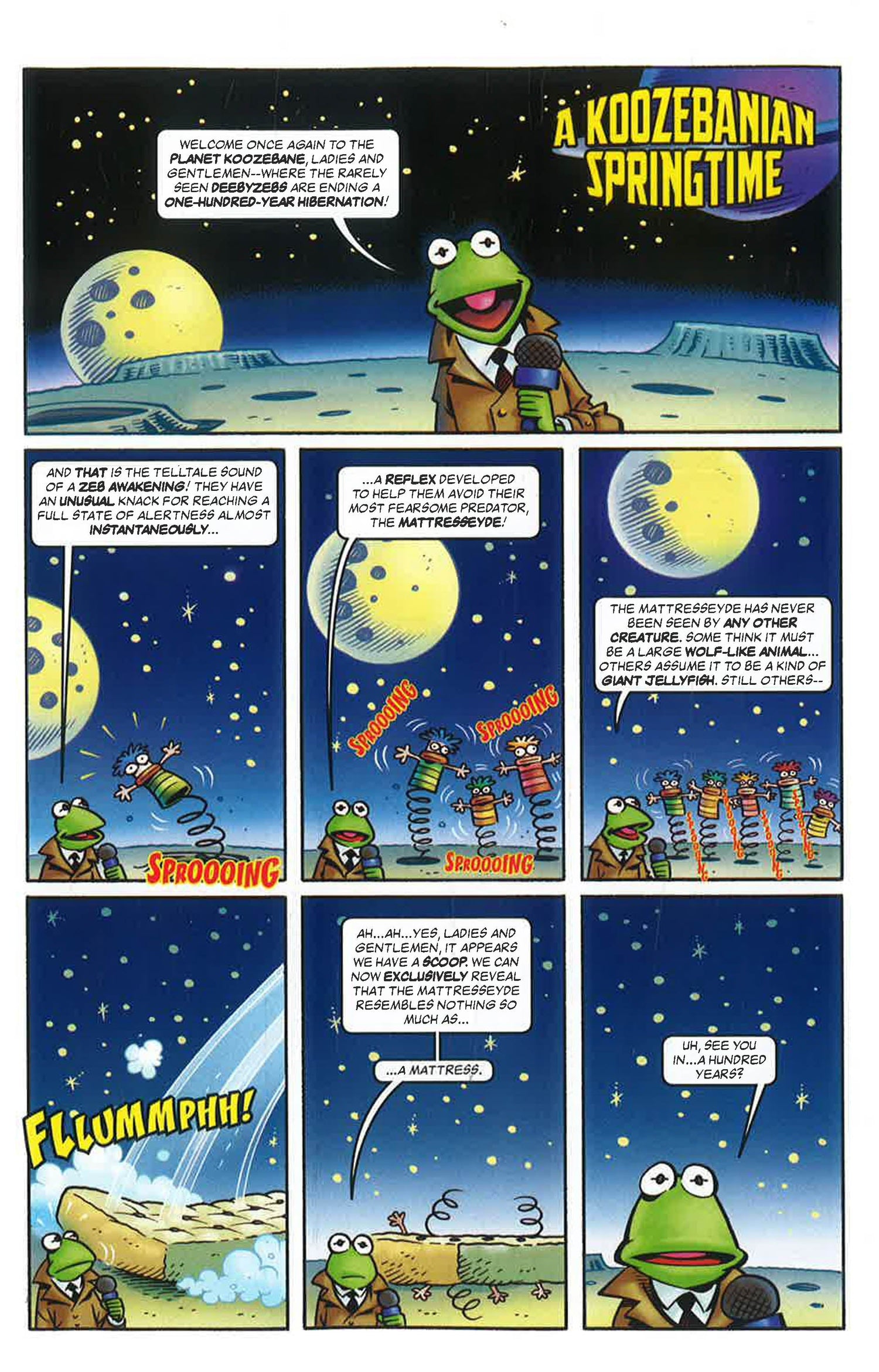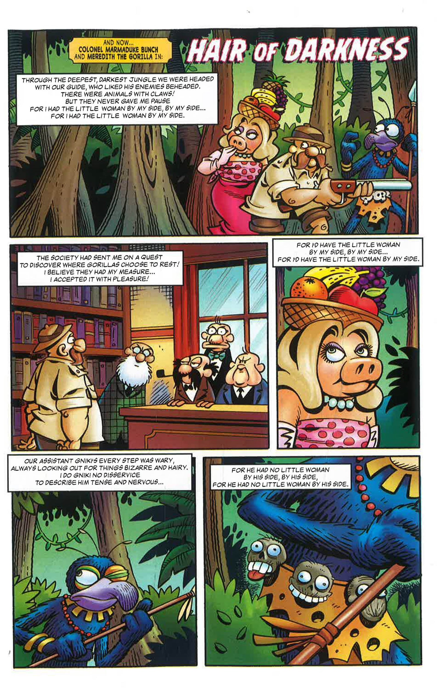 In the four-part Muppet Show story "The Four Seasons," Kermit and the gang put on a show to celebrate spring's arrival at the Muppet Theatre! But when special guest - Meredith the Mountain Gorilla - arrives to perform on the Muppet Show, her many admirers compete for her affections ... and chaos ensues! And that's just the tip of the iceberg as Roger Langridge brings you more Muppet mania!