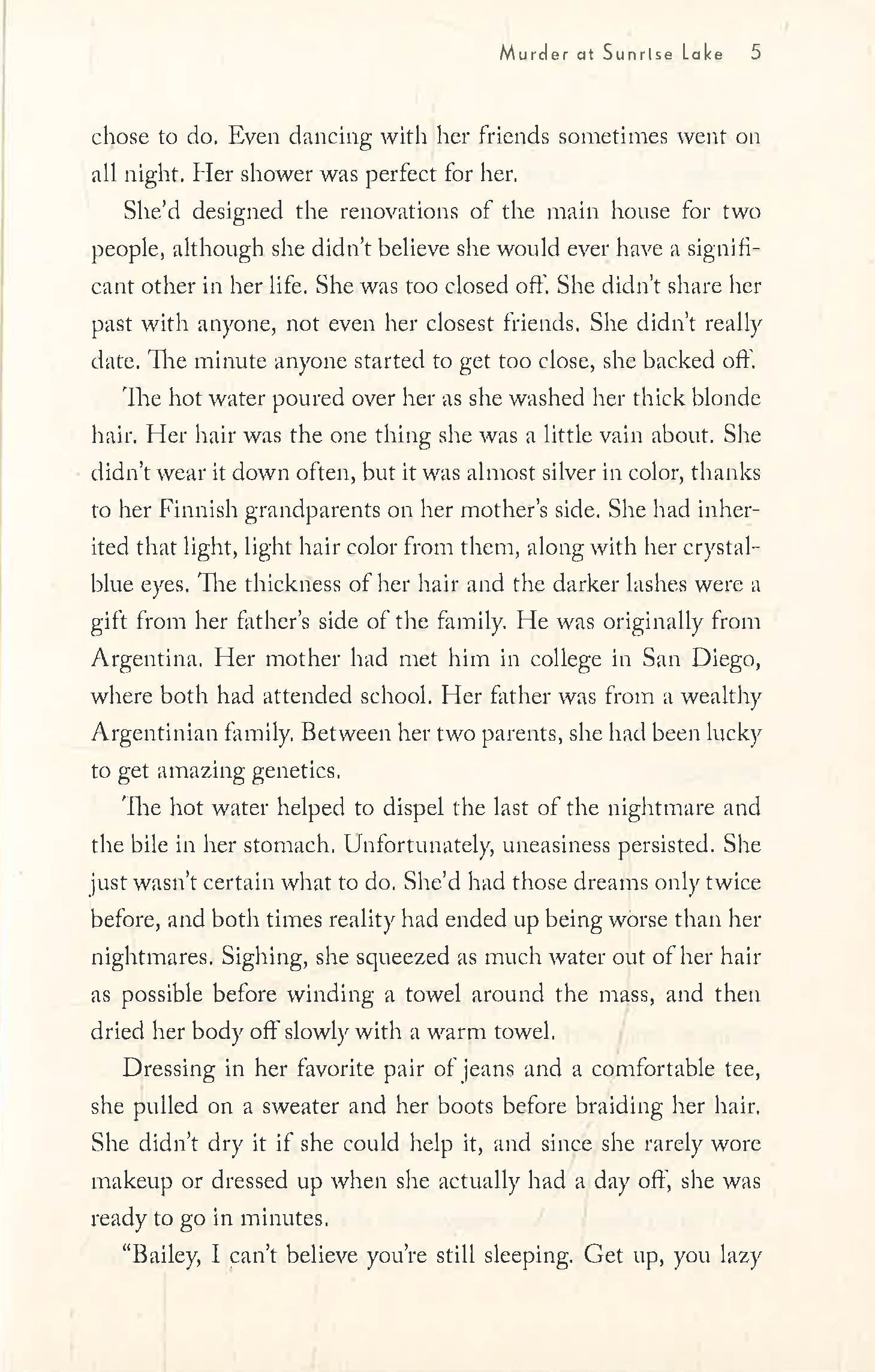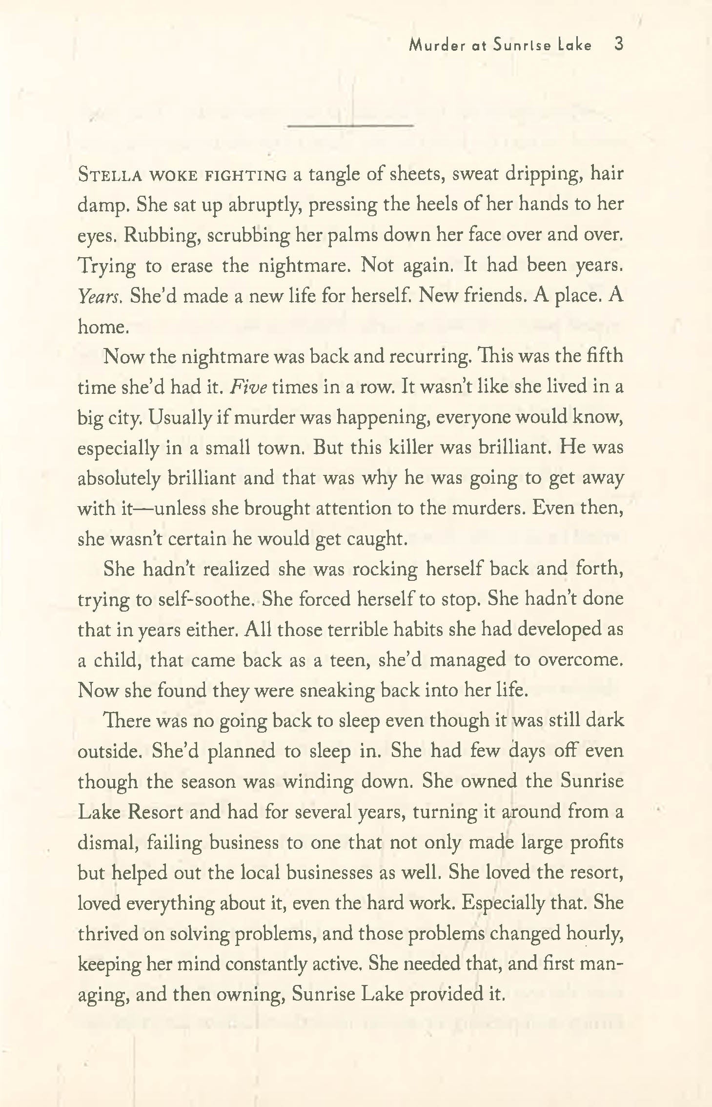 Stella Harrison thought she got away from the traumas of her past. Running the Sunrise Lake resort high in the Sierra Nevada mountains has brought her peace, even though she doesn't truly share her quiet life with anyone. Not even Sam, the hired handyman that notices everything and always seems to know exactly what she needs.
