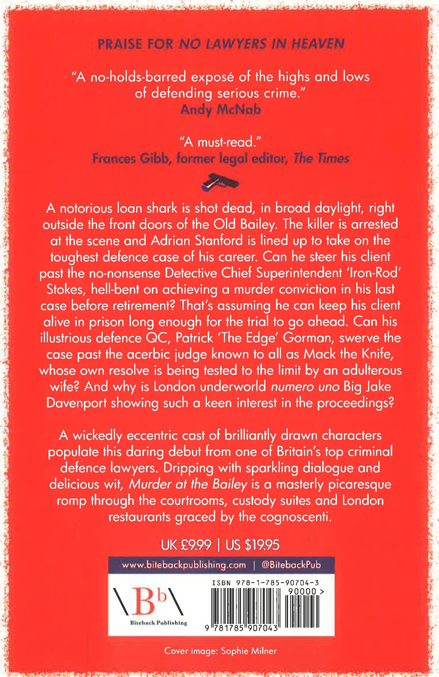 A notorious loan shark is shot dead, in broad daylight, right outside the front doors of the Old Bailey. The killer is arrested at the scene and Adrian Stanford is lined up to take on the toughest defence case of his career. Can he steer his client past the no-nonsense Detective Chief Superintendent ‘Iron-Rod’ Stokes, hell-bent on achieving a murder conviction in his last case before retirement? That’s assuming he can keep his client alive in prison long enough for the trial to go ahead. Can his illustrious defence QC, Patrick ‘The Edge’ Gorman, swerve the case past the acerbic judge known to all as Mack the Knife, whose own resolve is being tested to the limit by an adulterous wife? And why is London underworld numero uno Big Jake Davenport showing such a keen interest in the proceedings? A wickedly eccentric cast of brilliantly drawn characters populate this daring debut from one of Britain’s top criminal defence lawyers. Dripping with sparkling dialogue and delicious wit, Murder at the Bailey is a masterly picaresque romp through the courtrooms, custody suites and London restaurants graced by the cognoscenti.