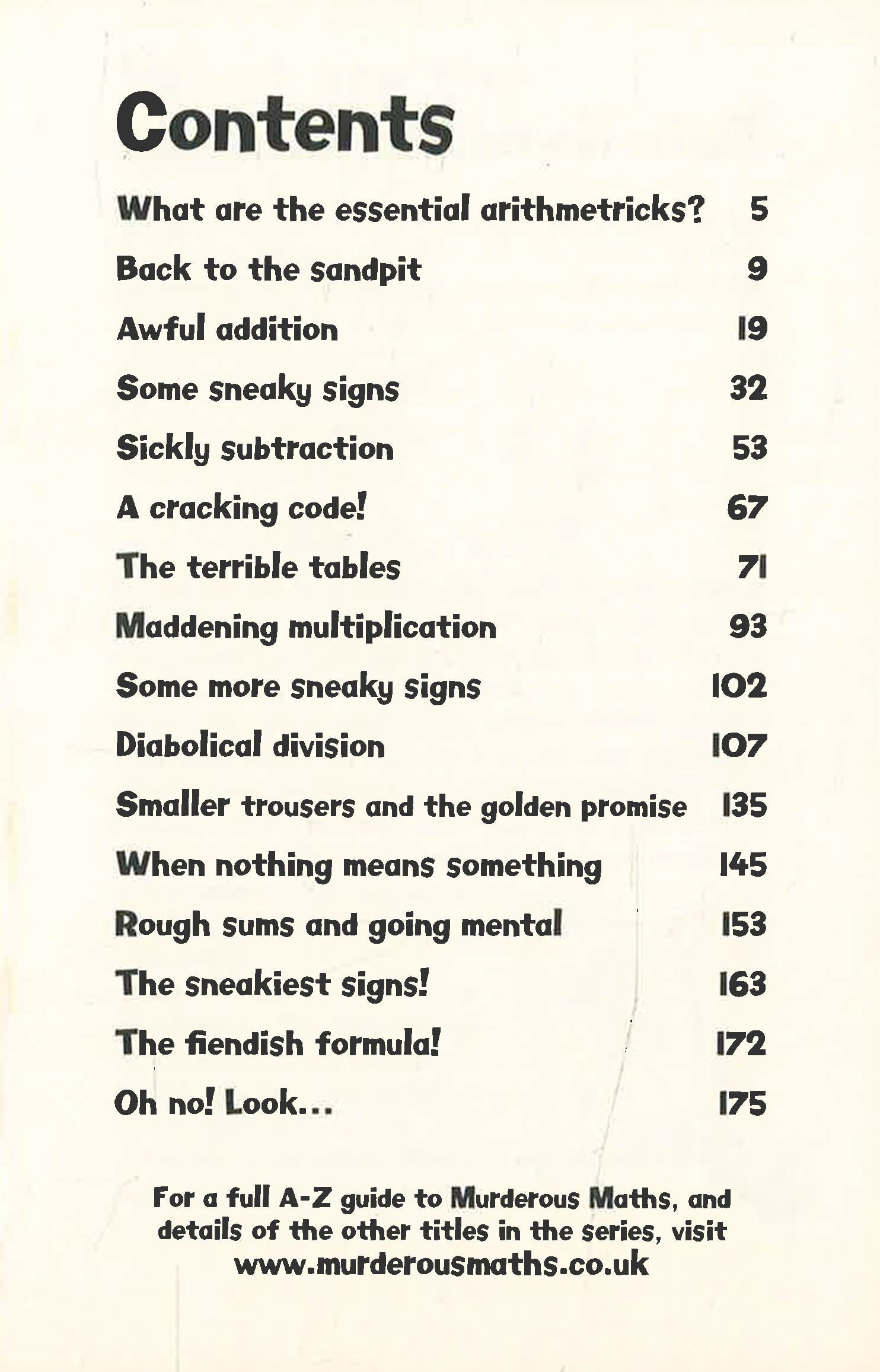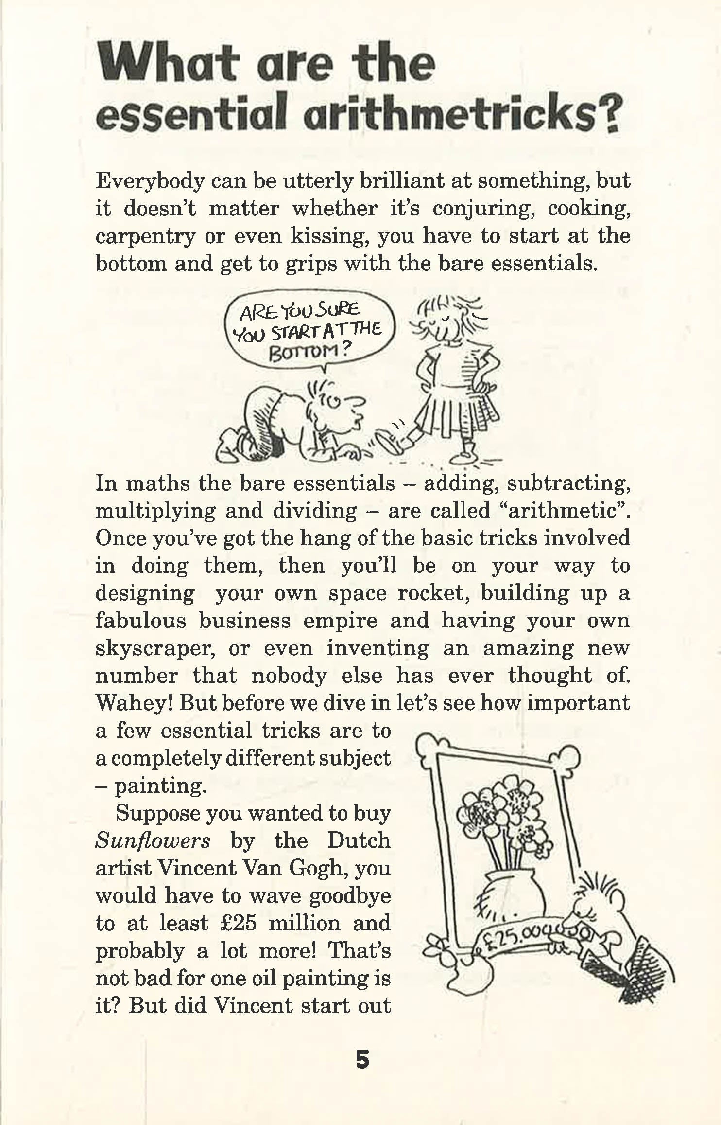 Maths with the laughs added in! Why nothing sometimes means something? Can you beat Professor Fiendish's foul formula? What can stop a hairy green spot epidemic? Find out in the Essential Arithmetricks - all the tricks, tips and short-cuts they don't teach at school.