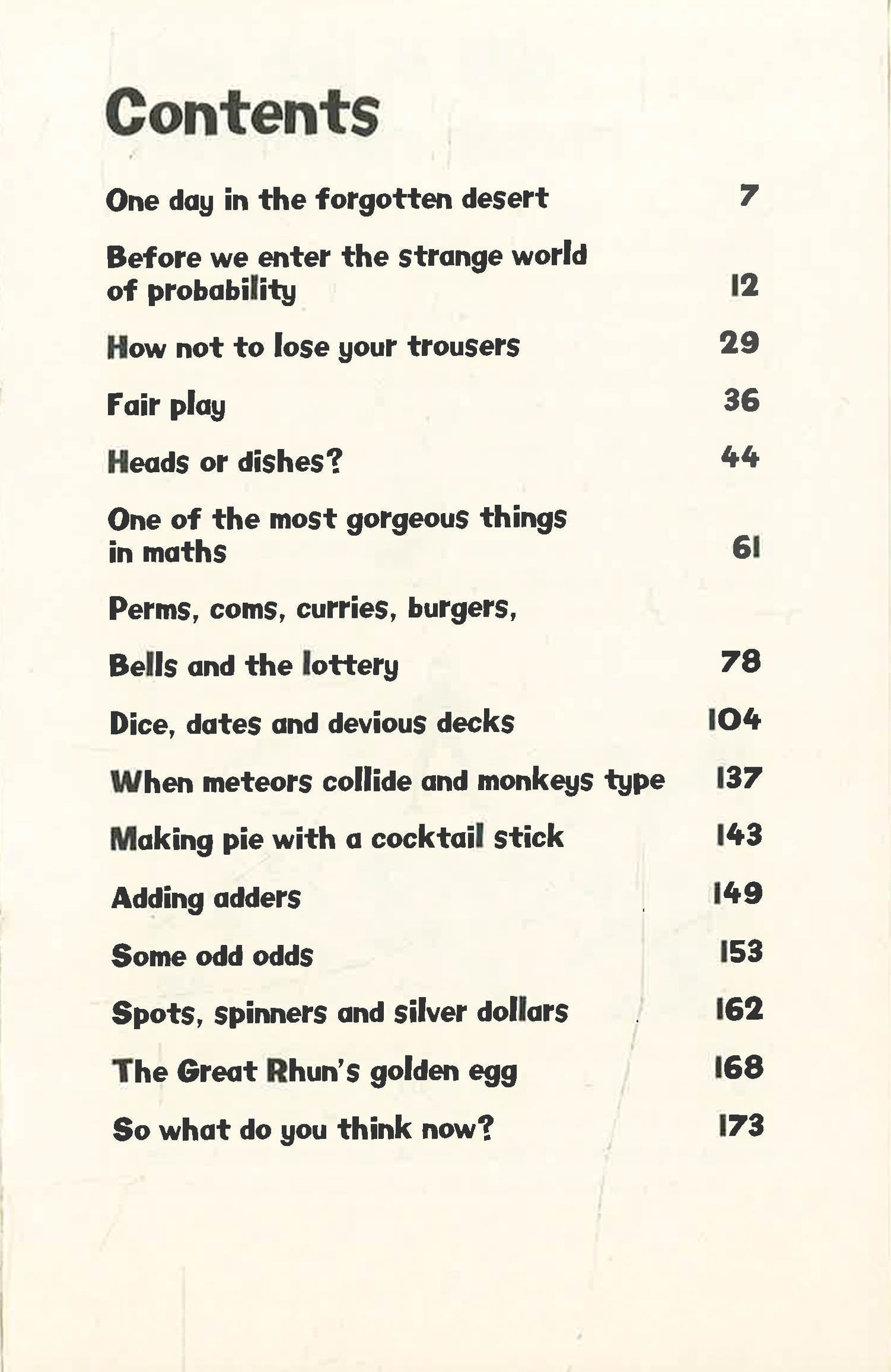 Using a host of hilarious characters, Kjartan Poskitt presents all the tricks, tips and shortcuts to probability they don't teach at school. Readers will learn why coins have no memory, and whether Urgum the Axeman is likely to lose his head and join Riverboat Lil and Brett Shuffler in a mathematical tangle with swamp snake.