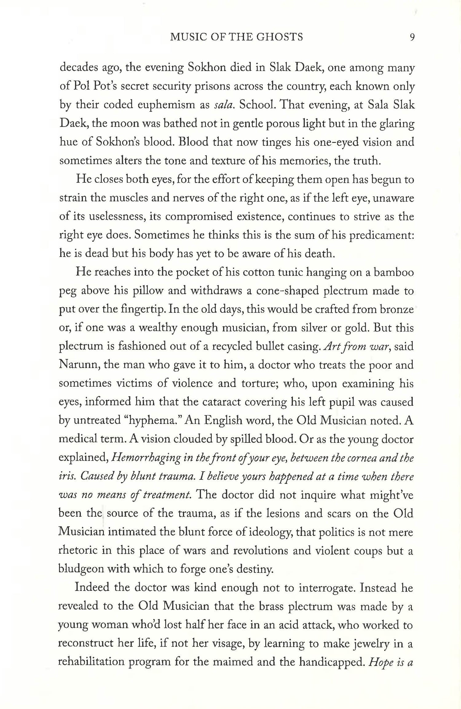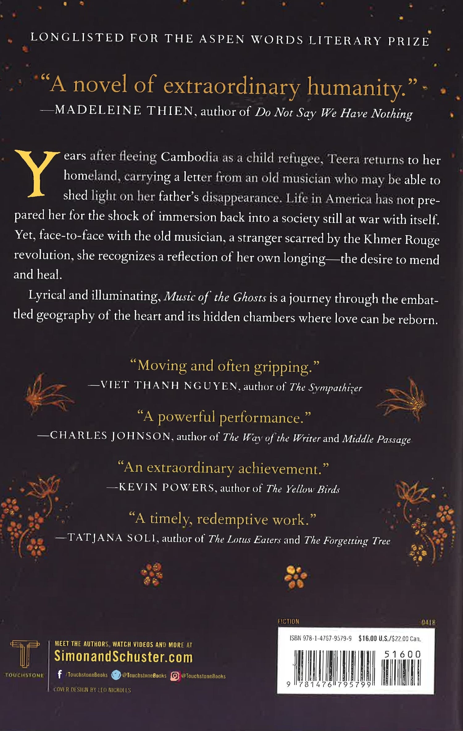 This "novel of extraordinary humanity" (Madeleine Thien, author of Do Not Say We Have Nothing) from New York Times bestselling author Vaddey Ratner reveals "the endless ways that families can be forged and broken hearts held" (Chicago Tribune) as a young woman begins an odyssey to discover the truth about her missing father. Leaving the safety of America, Teera returns to Cambodia for the first time since her harrowing escape as a child refugee. She carries a letter from a man who mysteriously signs himself as "the Old Musician" and claims to have known her father in the Khmer Rouge prison where he disappeared twenty-five years ago. In Phnom Penh, Teera finds a society still in turmoil, where perpetrators and survivors of unfathomable violence live side by side, striving to mend their still beloved country. She meets a young doctor who begins to open her heart, confronts her long-buried memories, and prepares to learn her father's fate. Meanwhile, the Old Musician, who earns his modest keep playing ceremonial music at a temple, awaits Teera's visit. He will have to confess the bonds he shared with her parents, the passion with which they all embraced the Khmer Rouge's illusory promise of a democratic society, and the truth about her father's end. A love story for things lost and restored, a lyrical hymn to the power of forgiveness, Music of the Ghosts is a "sensitive portrait of the inheritance of survival" (USA TODAY) and a journey through the embattled geography of the heart where love can be reborn. *This book may have a remainder mark