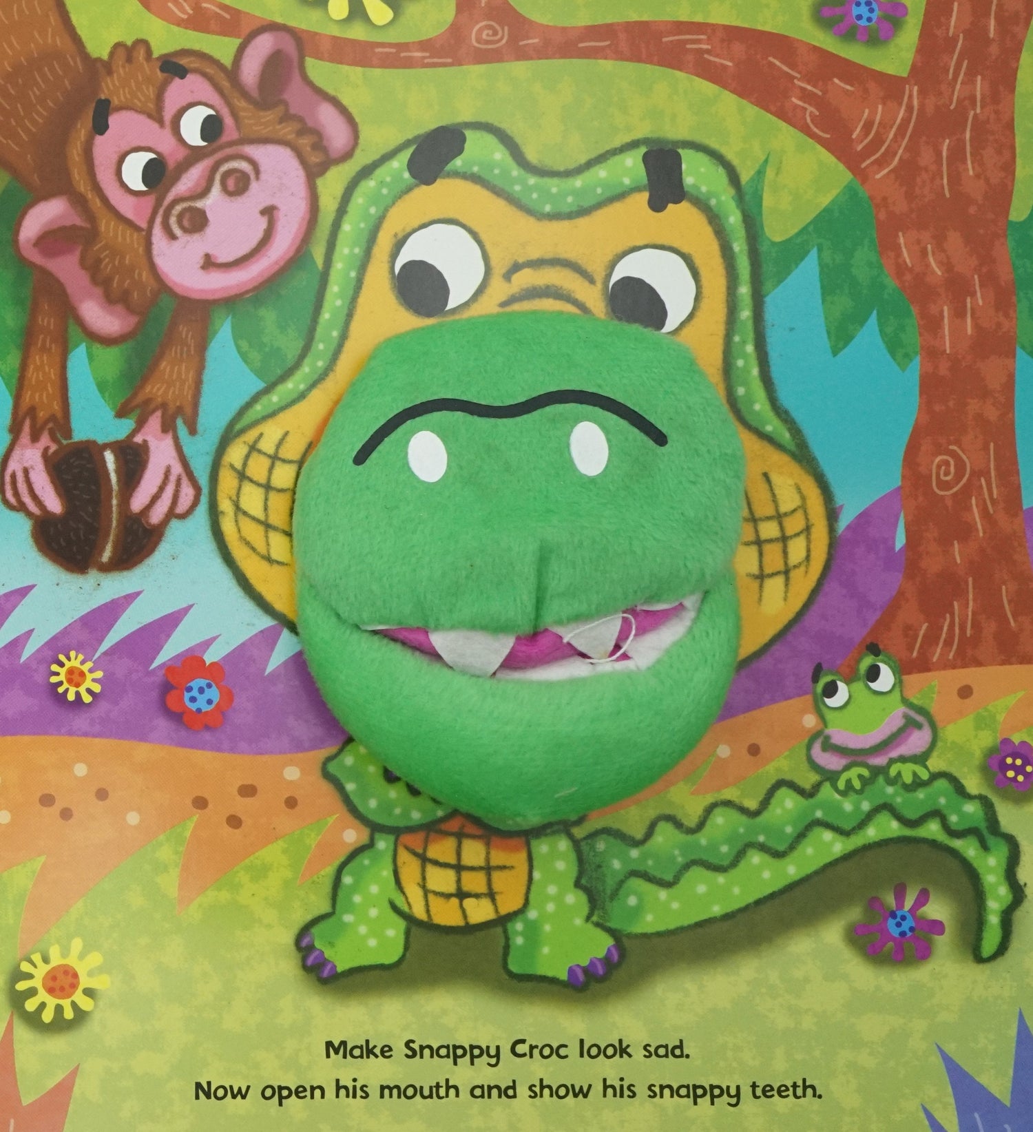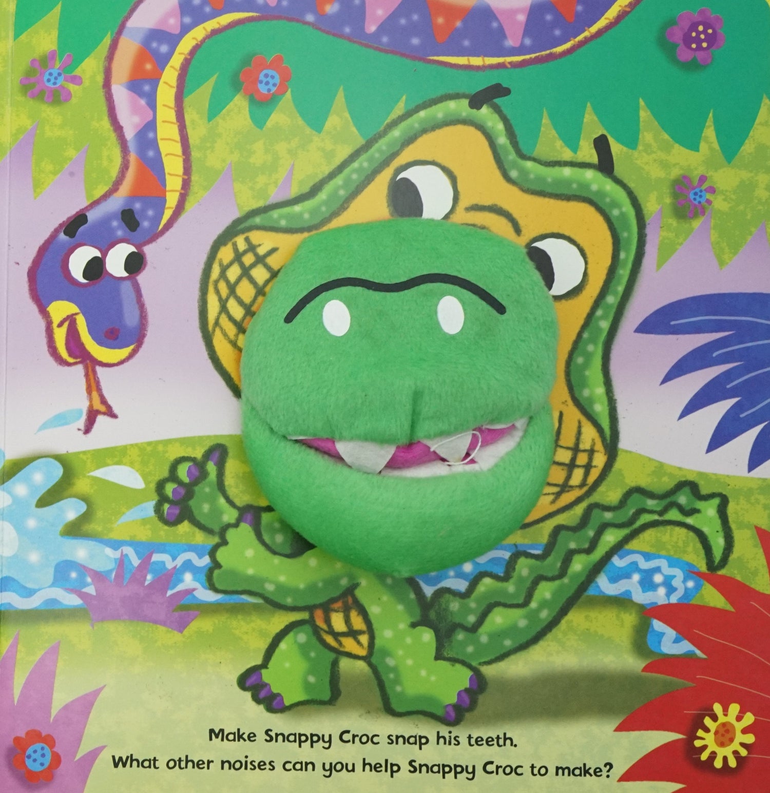 Snappy Crocodile tells the story of a snappy crocodile, playing with friendly animal characters, children will love the cute, adorable animal characters and the soft fabric hand puppets die-cut throughout the book.