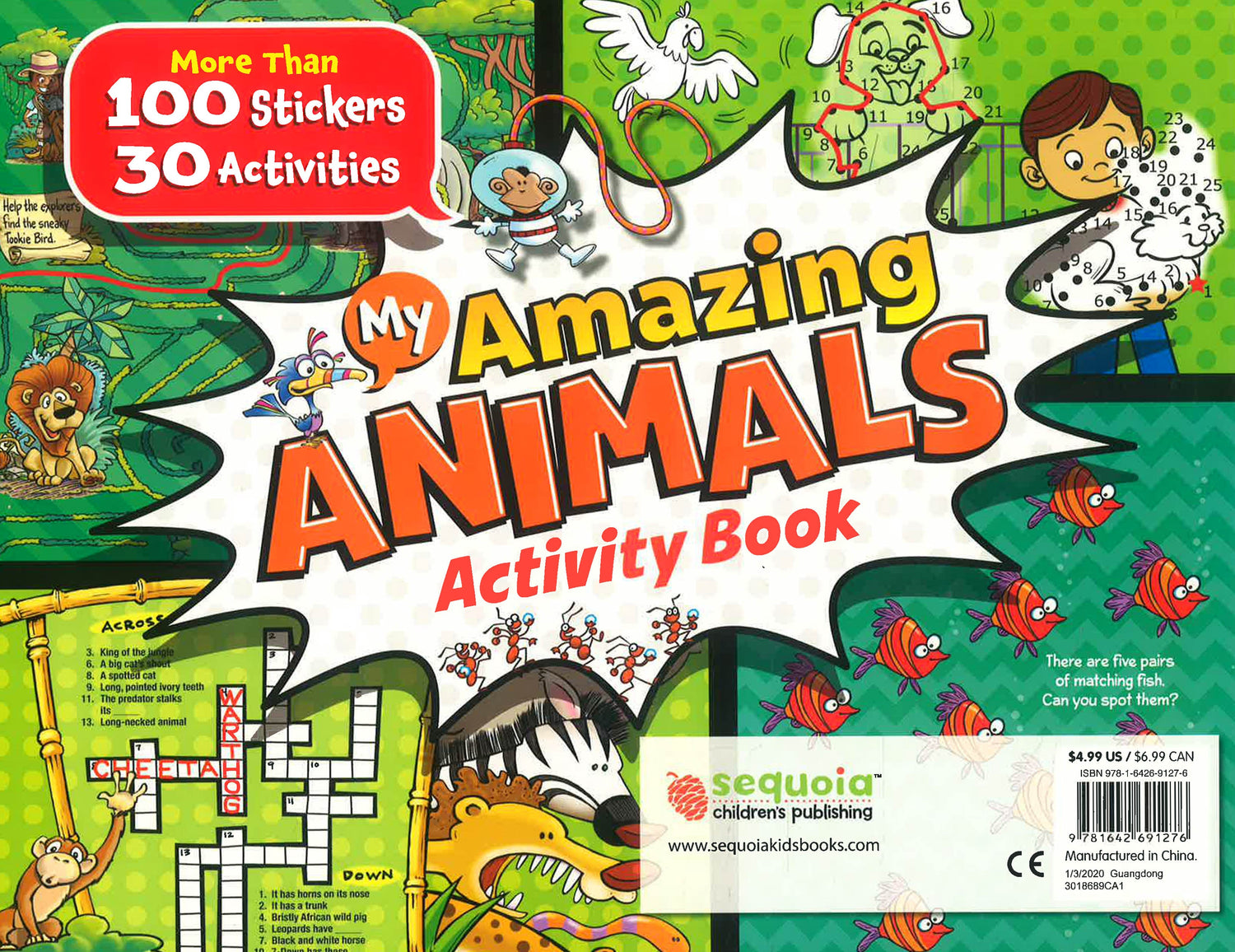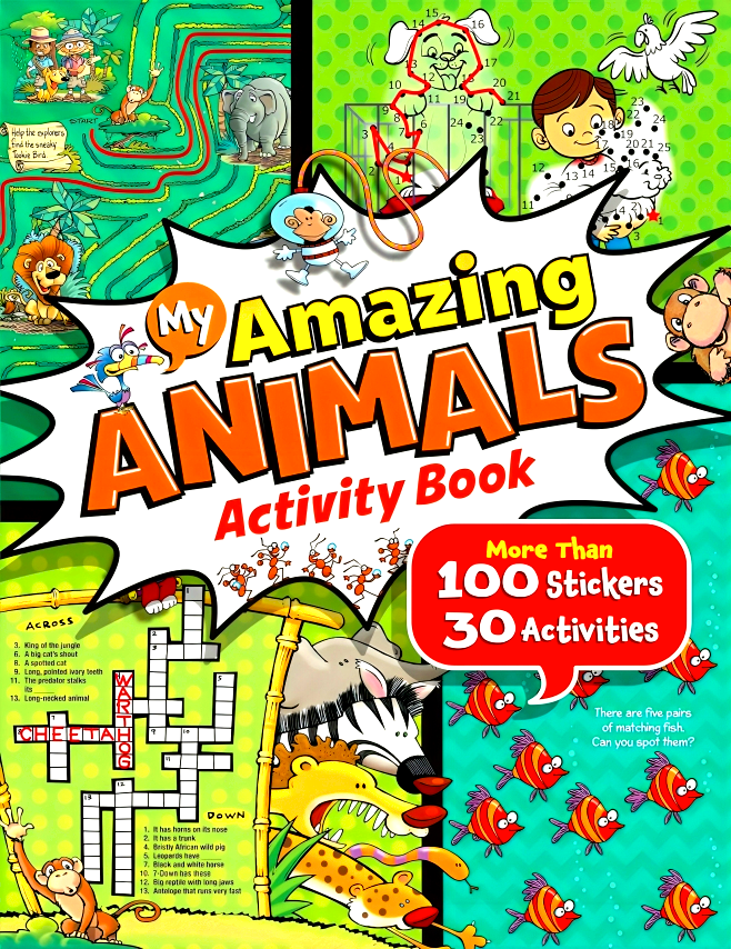 Lions and tigers and bears, oh my! This 16 page activity book is perfect for fans of the fuzzy, scaled, or prickly. With more than 30 puzzles and over 100 stickers, kids will enjoy working their way through this book filled with favorite animals.