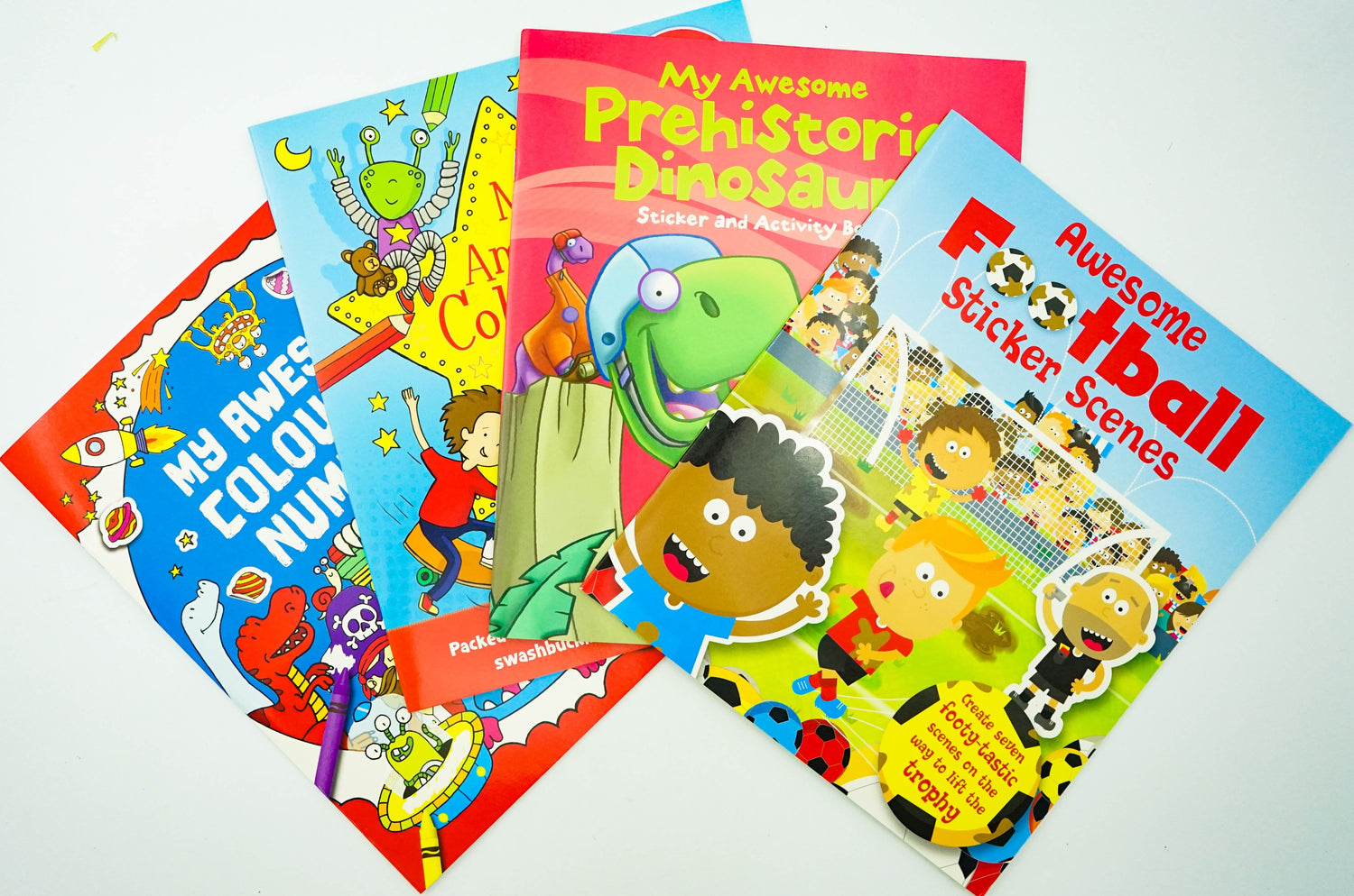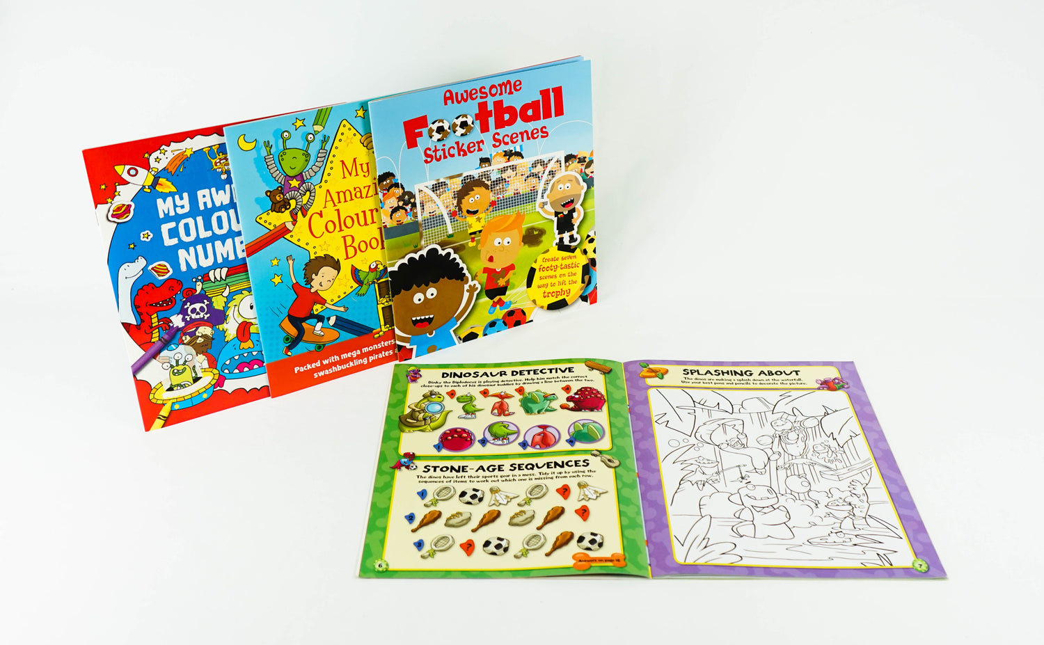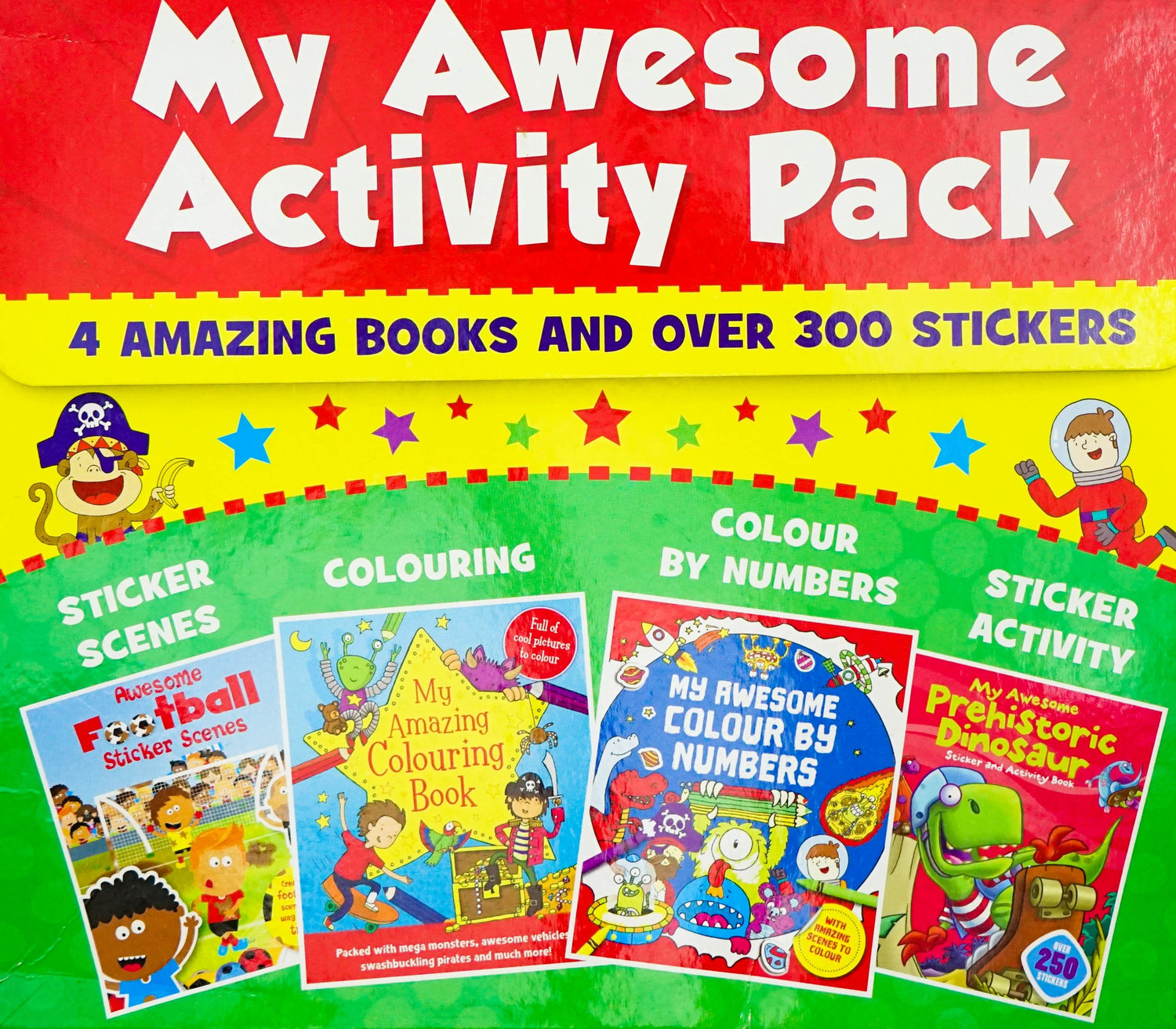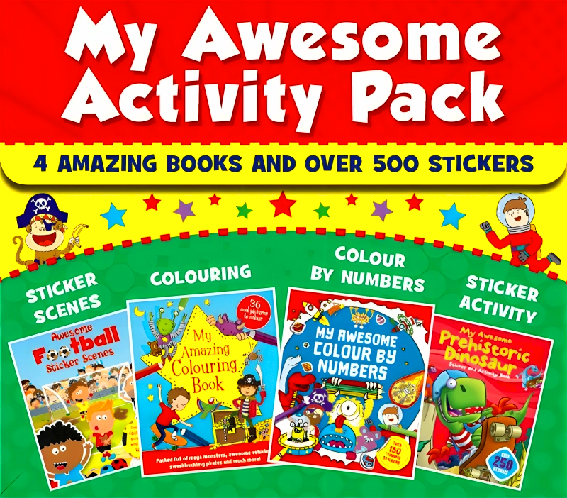 Decorate football sticker scenes, colour aliens and pirates, solve dinosaur puzzles and much more in this fun-filled activity pack. Get creative with the four books inside, plus over 300 stickers.