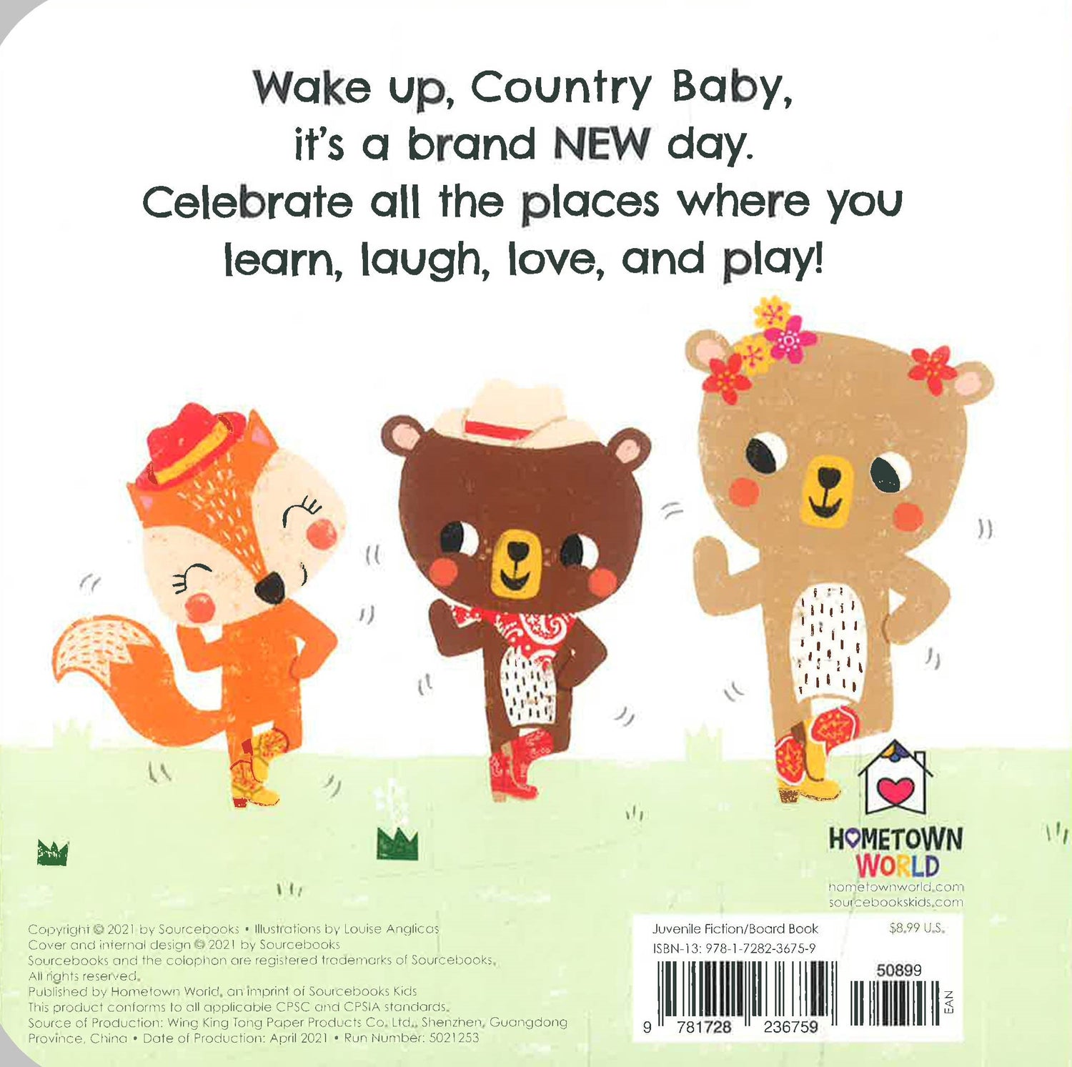 Wake up, Country Baby, and welcome to another fun day in the country! Enjoy feeding horses, doing farm chores, fishing at the dock, a visit to the county fair, doing the two-step in your cowboy boots, and so much more! From truck rides to campfire s'mores, explore the world with your Country Baby.