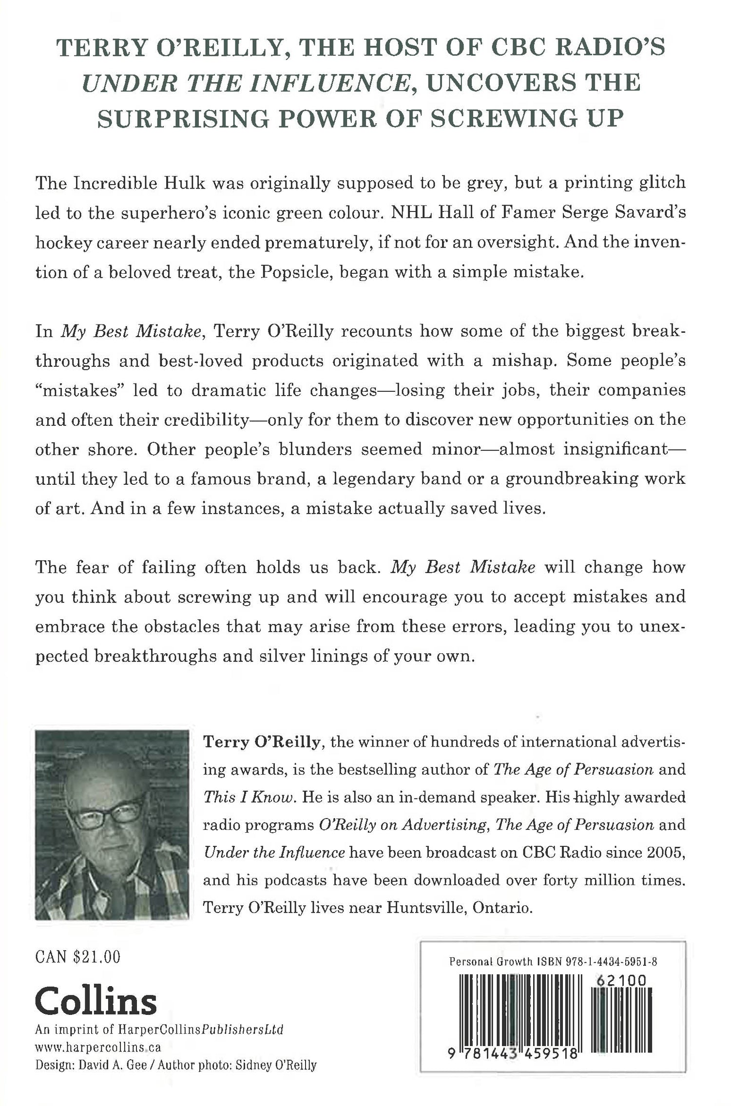 In his fascinating and meticulously researched new book, Terry O’Reilly recounts how some of the biggest breakthroughs and best-loved products originated with a mistake. Some people’s “mistakes” led to dramatic life changes--losing their jobs, their companies and often their credibility--only for them to discover new opportunities on the other shore. Other people’s mistakes seemed minor, almost insignificant--until they led to a famous brand, a legendary band or a groundbreaking work of art. And in a few instances, a mistake actually saved lives.