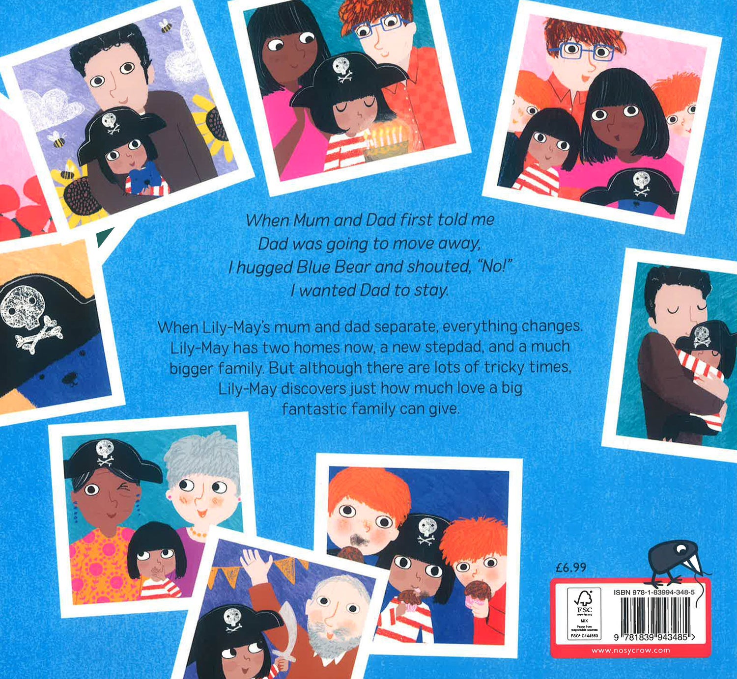 A funny and moving story about how a little girl copes with change after her parents separate. When Dad says that he's moving out, Lily-May feels all upside-down inside. But now Dad comes on Sundays, and they ride their bikes really fast and make secret dens together. Lily-May plays more just with Mum now, too - and when Mum's new partner Peter comes over, they play pirate ships! Sometimes, there are tricky moments - Lily-May hates it when Mum has to work late - but a birthday party with Lily-May's big fantastic family helps her realise just how many people love her. This reassuring celebration of non-nuclear families will help children to understand that they will always be loved, even if parents separate or divorce. Beautifully written in rhyme by the award-winning authors of the bestselling George's Amazing Adventures series, this uplifting story with a diverse cast of characters embraces all the positive aspects of becoming part of a blended family after a divorce or separation. Every Nosy Crow paperback picture book comes with a free "Stories Aloud" audio recording. Just scan the QR code and listen along!