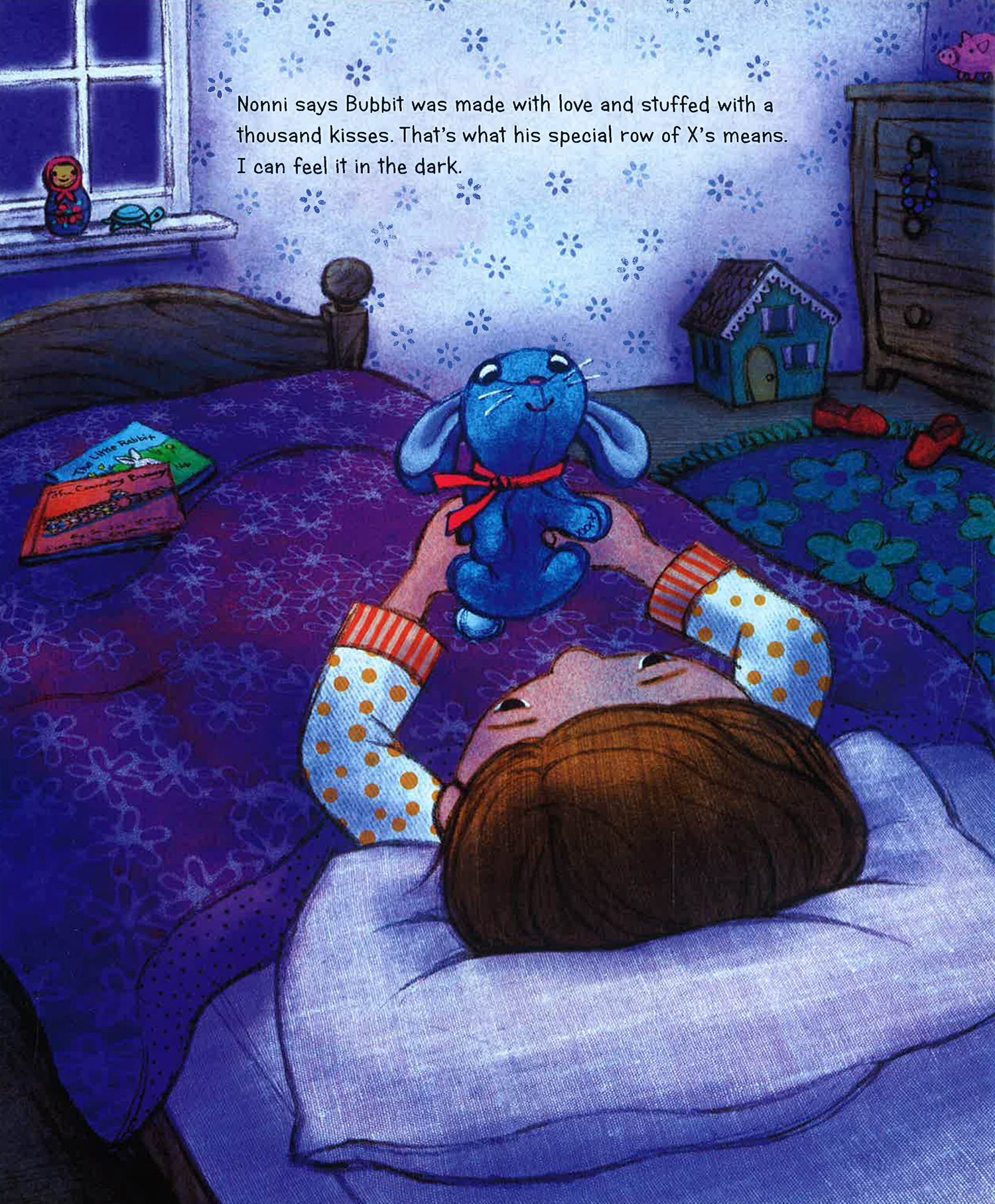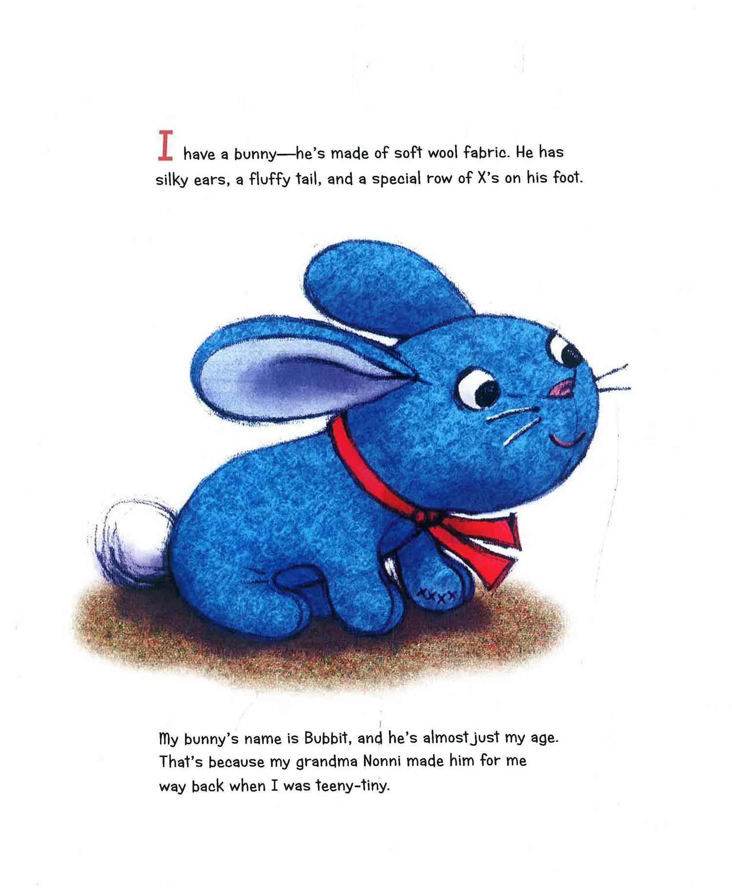 When the narrator of this story discovers she's going to have a new little brother, she's not so sure she wants one. Neither is Bubbit, her very special blue wool bunny. Her grandmother, Nonni, made Bubbit for her when she was born, so they're practically like twins. Soon it's time for the baby to be born. Nonni comes to stay, and she brings her sewing box. And before long, the narrator has decided to sew her new baby brother something almost as special as Bubbit.