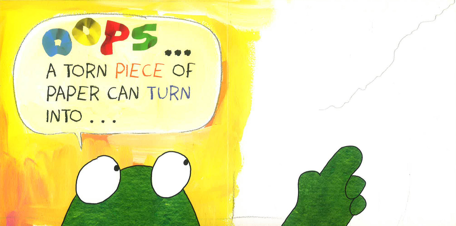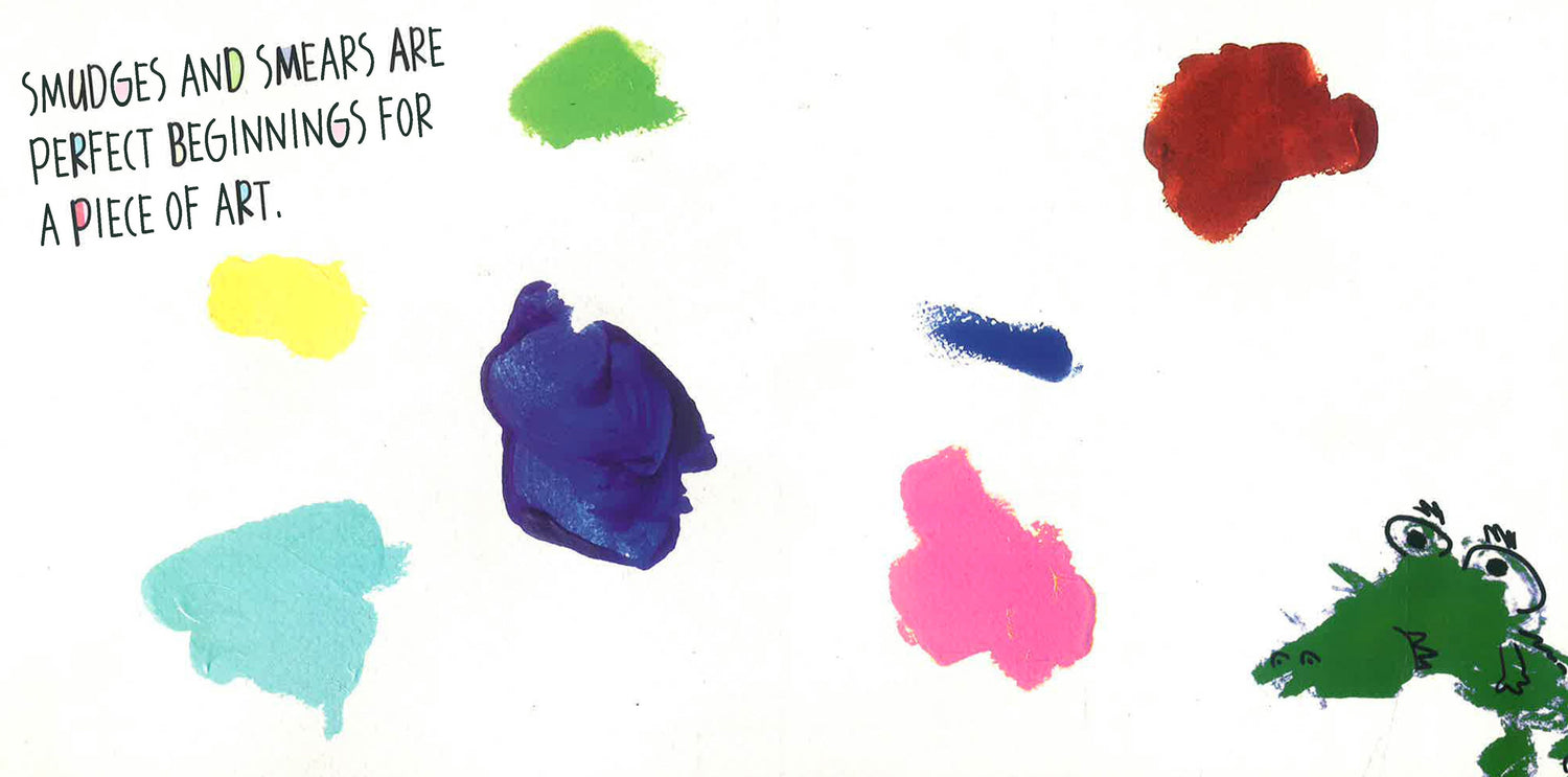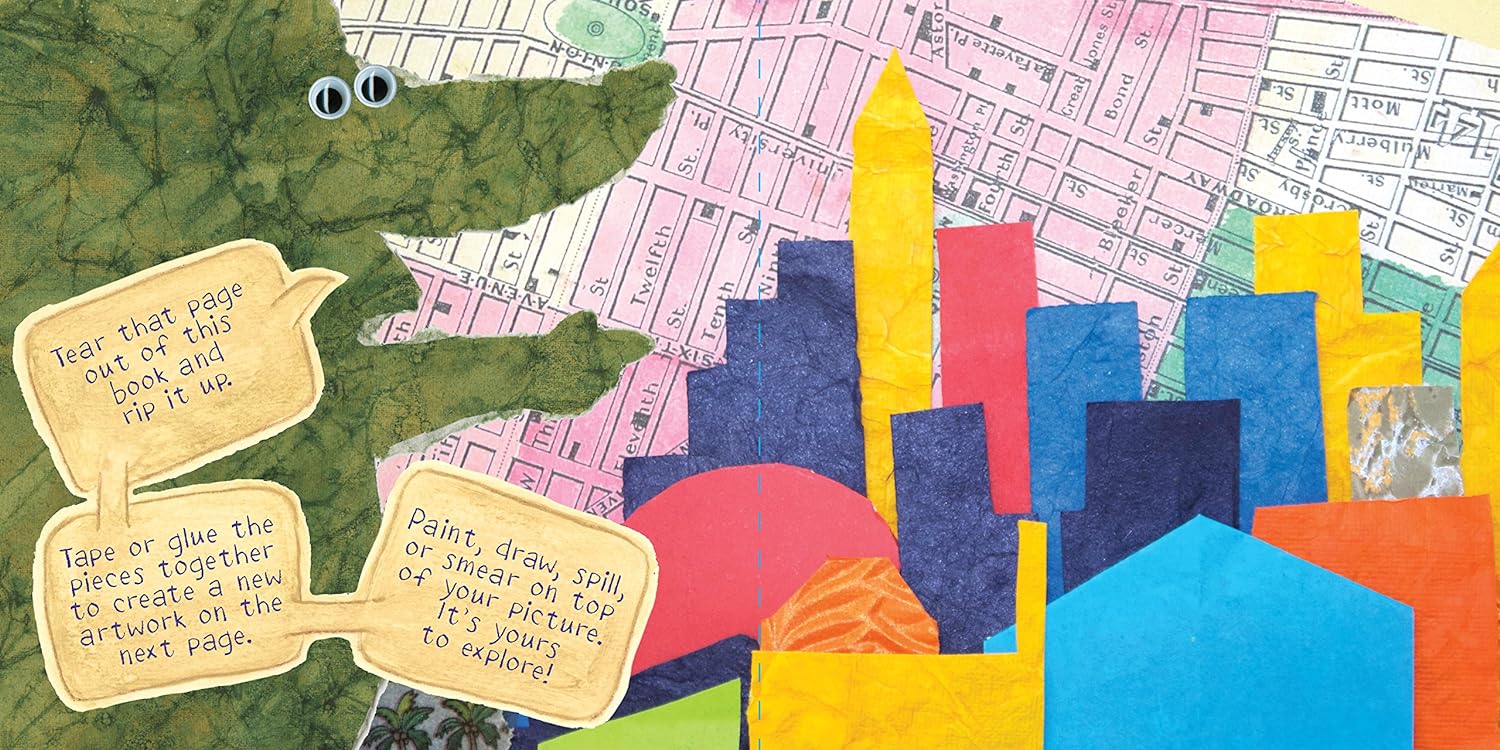 A hands-on journal that’s meant to be personalized—drawn in, painted on, torn up, smudged, or otherwise artistically wrecked—My Book of Beautiful Oops! is filled with folded, crumpled, die-cut, and lift-the-flap pages that will challenge the reader’s sense of play. The friendly green alligator from the first book prompts the reader: Bend a page. Decorate a smudge. Play with splats and spills. Even complete a poem that was accidentally ripped in half.