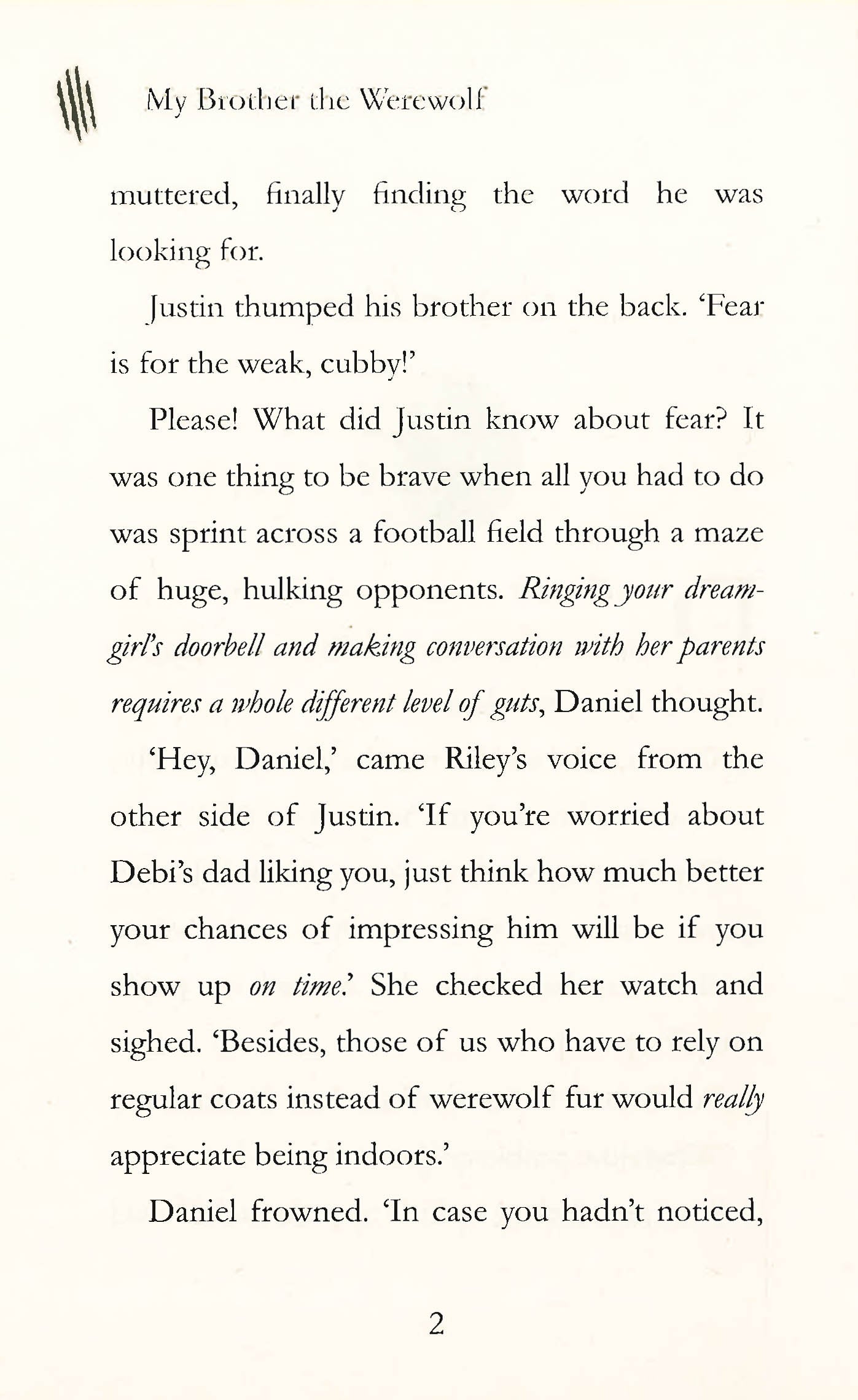 This is the fourth title in the brilliantly funny new series from the author of My Sister the Vampire. Justin and Daniel are in a spin. Justin's begun taking dance classes with his girlfriend, Riley. But if the football team find out, he's sure he'll be dead meat. Meanwhile, Daniel's really happy with Debi - but her dad is super suspicious of him, and completely convinced that werewolves exist! Can Daniel throw him off the scent? One thing's for sure, the twins will need some fancy footwork to get out of this...Sink your teeth into Justin and Daniel's fourth wild adventure!