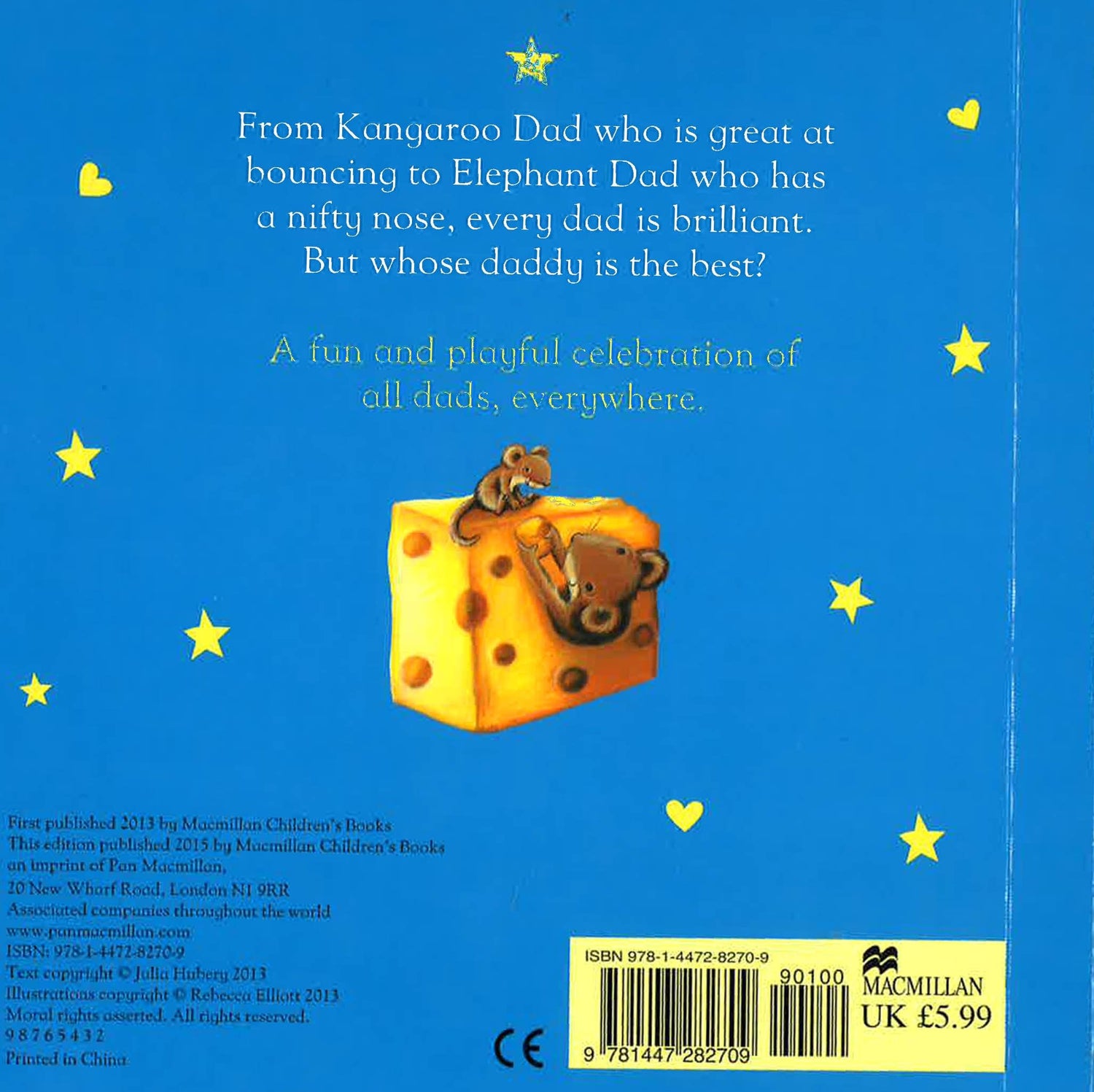From Kangaroo Dad who is great at bouncing to Elephant Dad who has a nifty nose, every dad is brilliant. But whose daddy is the best?A fun and playful celebration of all dads, everywhere.