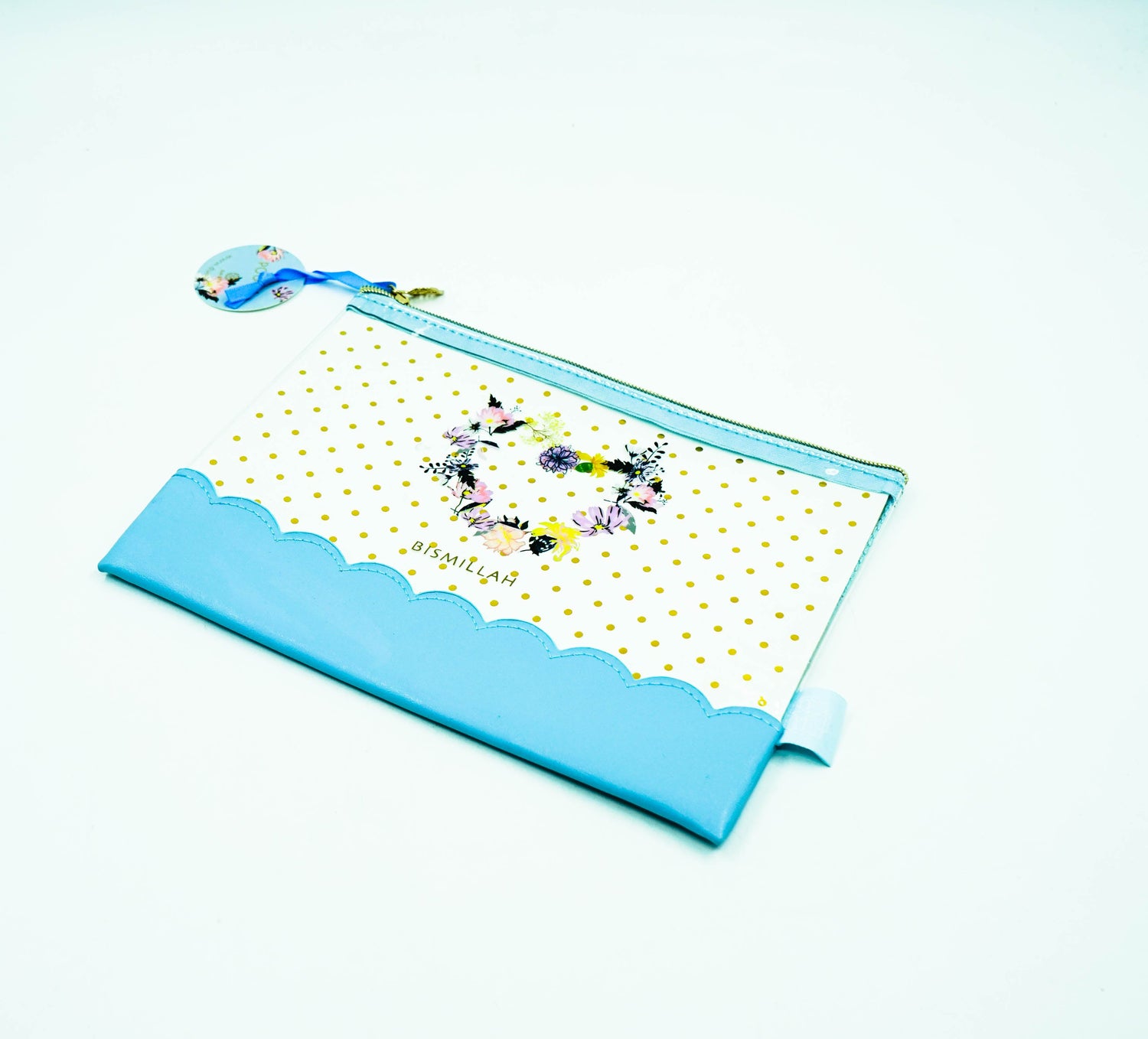 Product Details The Dua Gifts Pouch comes with elegant designs curated for the modern taste. Let a sense of calm wash over you with the soothing floral designs – a visual therapy for any time of the day. Each Dua Gifts Pouch “gifts” you with a powerful message that calls upon your inner peace, ease and gratitude. The message on your Dua Gifts Pouch is often short and sweet, yet beautiful to hold on to. Perfect as a gift for yourself or loved ones, it’s both functional and gorgeous for your storage needs. How to Care for It? We make our Dua Gifts Pouch with extra love and care. As it arrives in your hands, we hope you cherish it like we do. So we highly recommend to avoid any contact with water…and avoid leaving it in the car. Sticky fingers out there may mistake your pretty Dua Gifts Pouch with a purse! #RandomPublicServiceAnnouncement #You’reWelcome Product Specifications - Height: 190mm - Length: 240mm - Width: 5mm - Material: PU leather & PVC