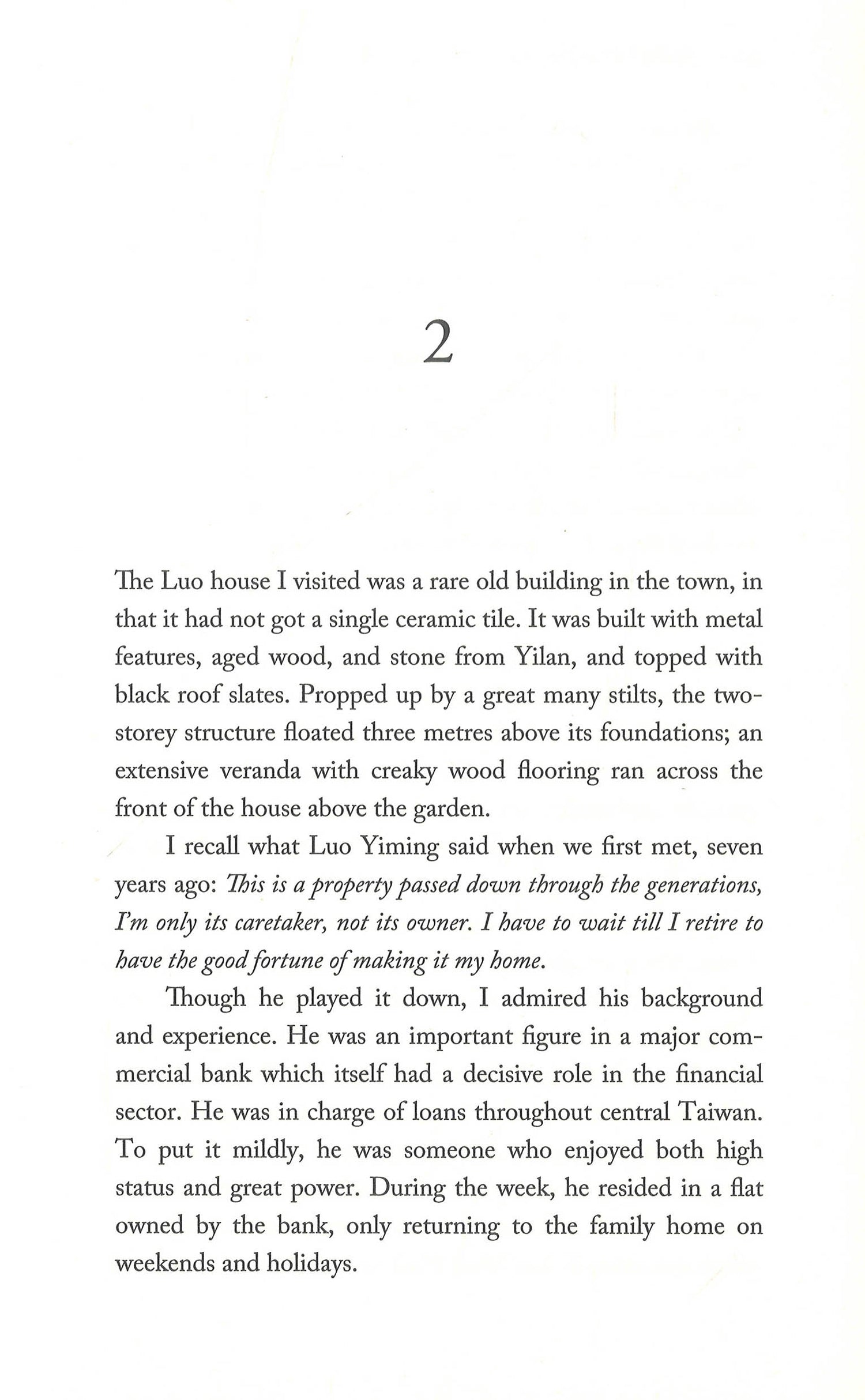 A man who has come from nothing, from poverty and loss, finds himself a beautiful wife, his dream love. When she vanishes without a trace, he sets up a small cafe in her favourite spot on the edge of the South China Sea, hoping she'll return. Instead, he is confronted by the man he suspects may be responsible for everything he has suffered: Luo Yiming, a prominent businessman and philanthropist who holds the small town in his sway. In the few moments the two men spend together, Luo is driven mad. So begins a story of desire and betrayal set against the tumultuous first decade of Taiwan's 21st Century. The recipient of all three of Taiwan's major literary prizes, My Enemy's Cherry Tree is a story of love, money and coercion, in which two men who have sought to acquire something unattainable, instead lose something irreplaceable.