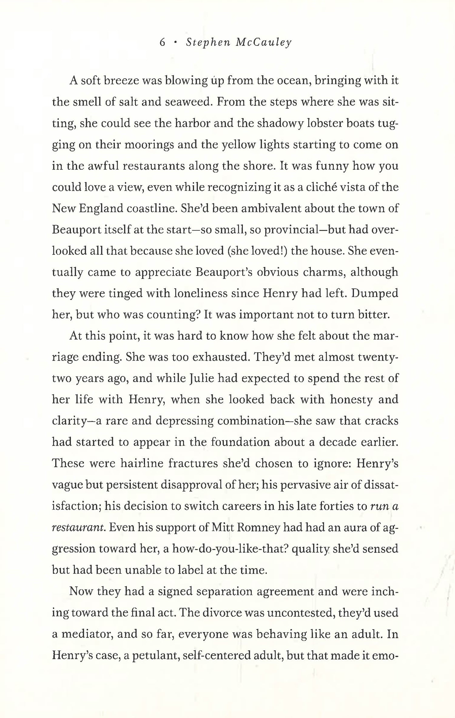 Julie definitely doesn’t have a problem with marijuana (she’s given it up completely, so it doesn’t matter if she gets stoned almost daily) and the Airbnb she’s running out of her seaside house north of Boston is neither shabby nor illegal. And she has two whole months to come up with the money to buy said house from her second husband before their divorce is finalised. She’d just like David’s help organising college plans for her seventeen-year-old daughter. That would be Mandy. To quote Barry Manilow, Oh Mandy. When David flies east, they find themselves living under the same roof (one David needs to repair). David and Julie pick up exactly where they left off thirty years ago - they’re still best friends who can finish each other’s sentences. But there’s one broken bit between them that no amount of home renovations will fix.
