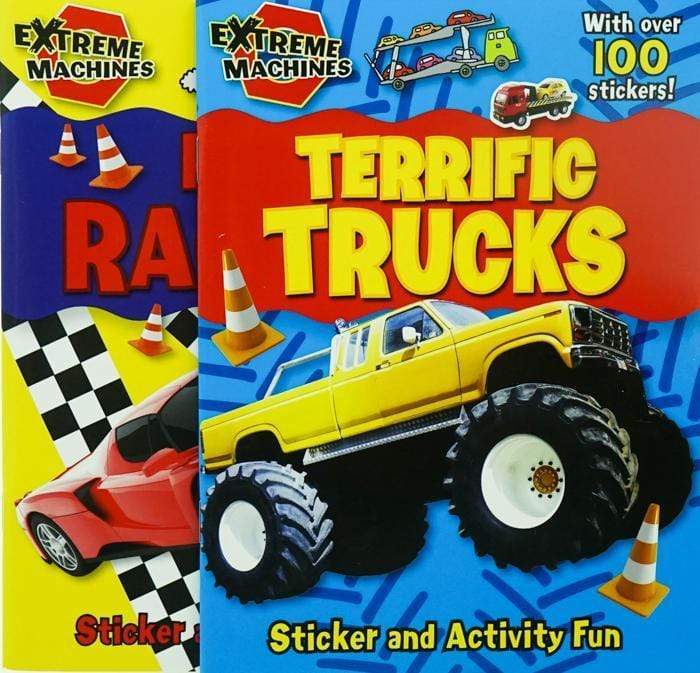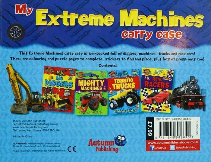 Four EXTREME! press-out sticker and activity titles for boys in a fun carry case with a plastic handle. The box is packed with monster machines, awesome activities, seriously cool stickers and press-outs all secured with a Velcro fastening.