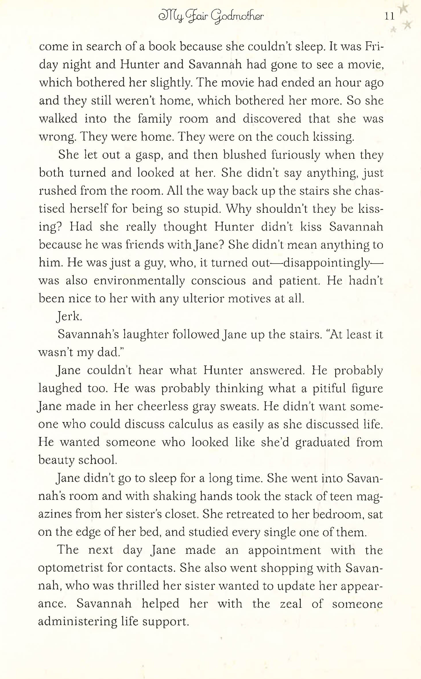After her boyfriend dumps her for her older sister, sophomore Savannah wishes she could find a true prince to take her to the prom. Enter Chrysanthemum Everstar: Savannah's gum-chewing, cell phone-carrying, high heel-wearing Fair Godmother. Despite a few wish-granting mishaps, Savannah's fairy-tale ending might not be as far off as she imagined.