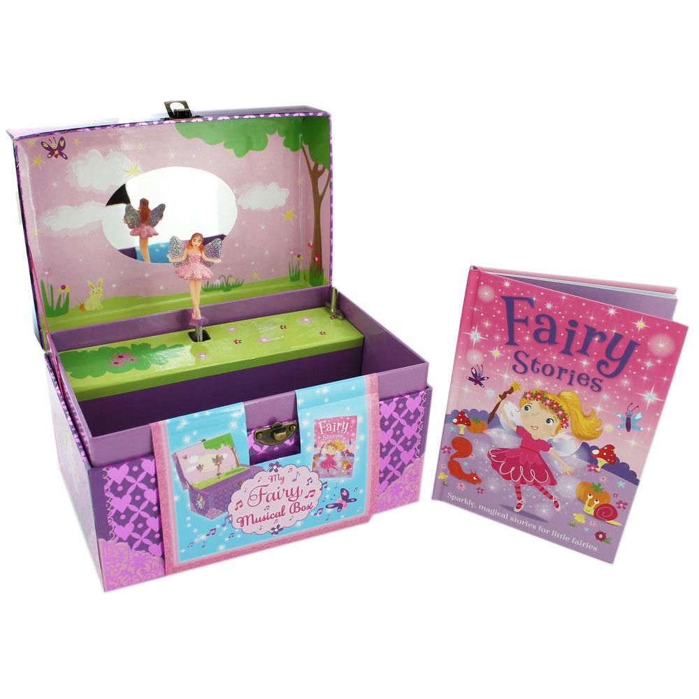 Every little girl needs a pretty trinket box to keep her treasures safe. W ind the key, lift the lid and watch the fairy twirl to the enchanting music. There's also a world of friendship, magic and adventure to discover with a beautiful book of fairy stories.