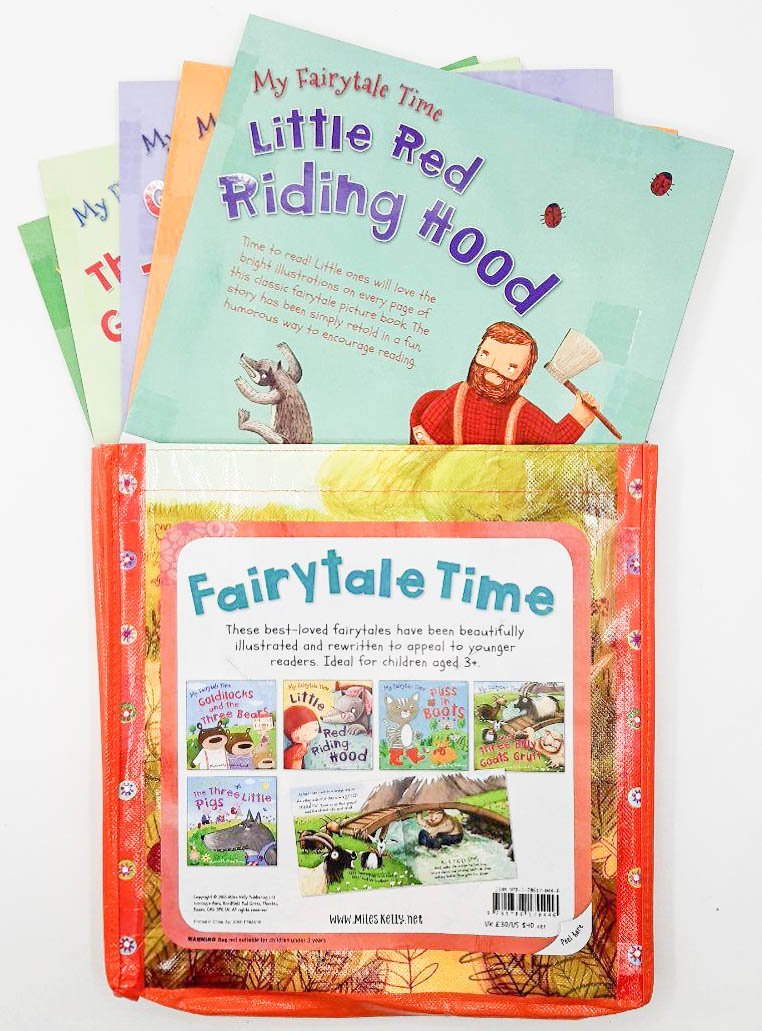Each book inside My Fairytale Time 5-book Collection Bag is stunningly illustrated to bring fairytale characters to life in kids' imaginations. Brightly coloured illustrations, clear text and humorous language encourage children learning to read and appeal to kids who enjoy story time. Books included: Goldilocks and the Three Bears, Little Red Riding Hood, Puss in Boots, The Three Billy Goats Gruff, and The Three Little Pigs.