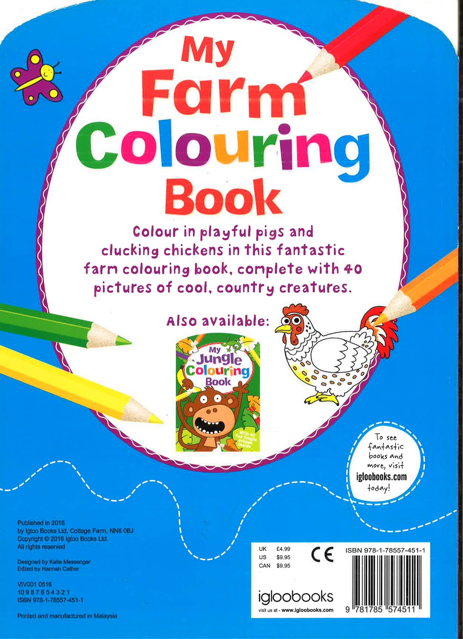Colour in playful pigs and clucking chickens in this fantastic farm colouring book, complete with 40 pictures of cool, country creatures. A fun-filled activity book that is sure to keep little ones entertained.