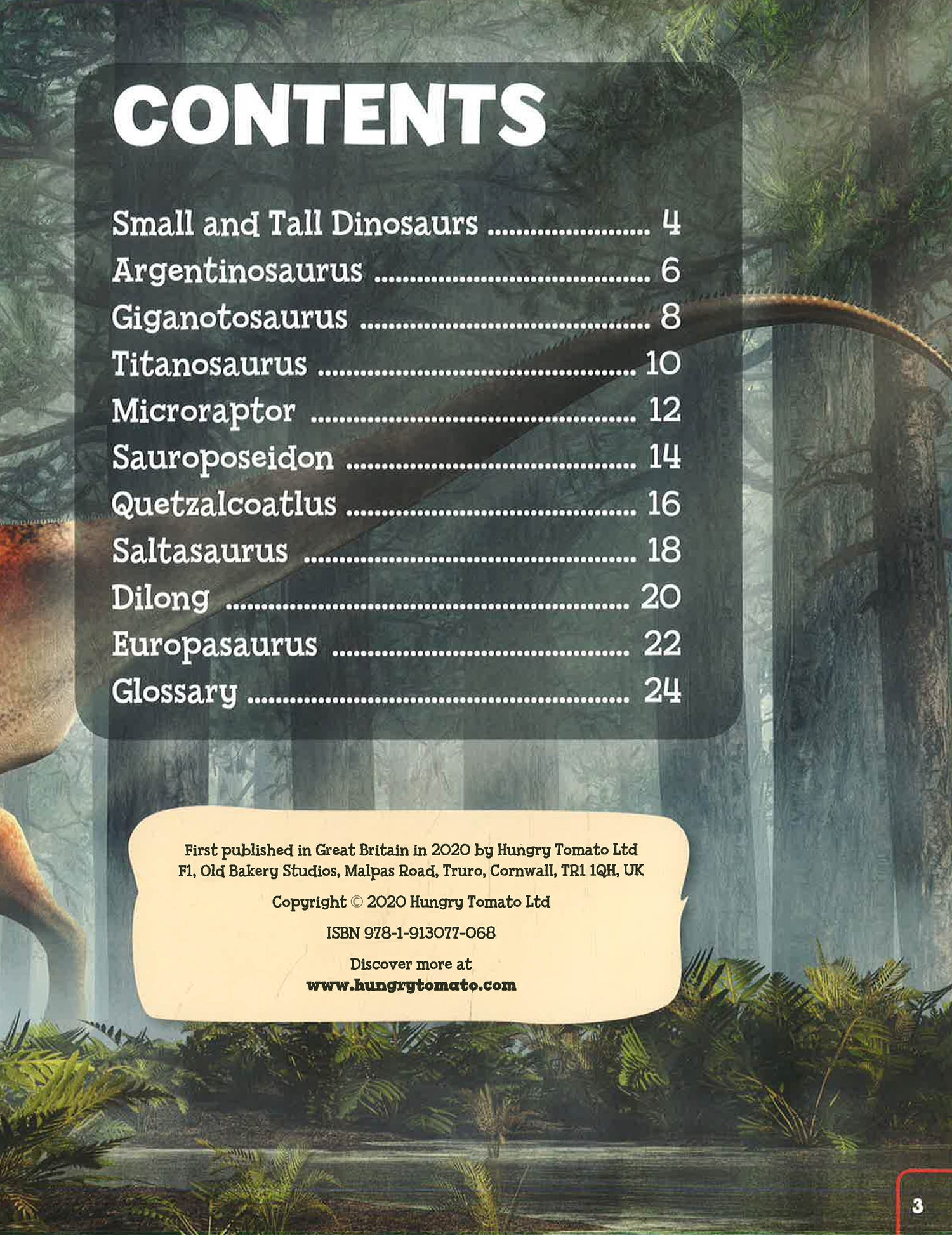 Meet fascinating dinosaurs sure to be favorites, from the show-stopping Spinosaurus―the largest walking predator from the dinosaur era―all the way to the weird-looking Stegosaurus. Readers will discover what makes each one special, where and when they lived, who they feared, and who they preyed upon. Each spread features an amazing dinosaur in a dynamic and realistic illustration, alongside bite-sized nuggets of information. Readers will also learn incredible facts about each dinosaur's size and more! This series is lighthearted and fun, packed with dinosaurs adored by children of any age.