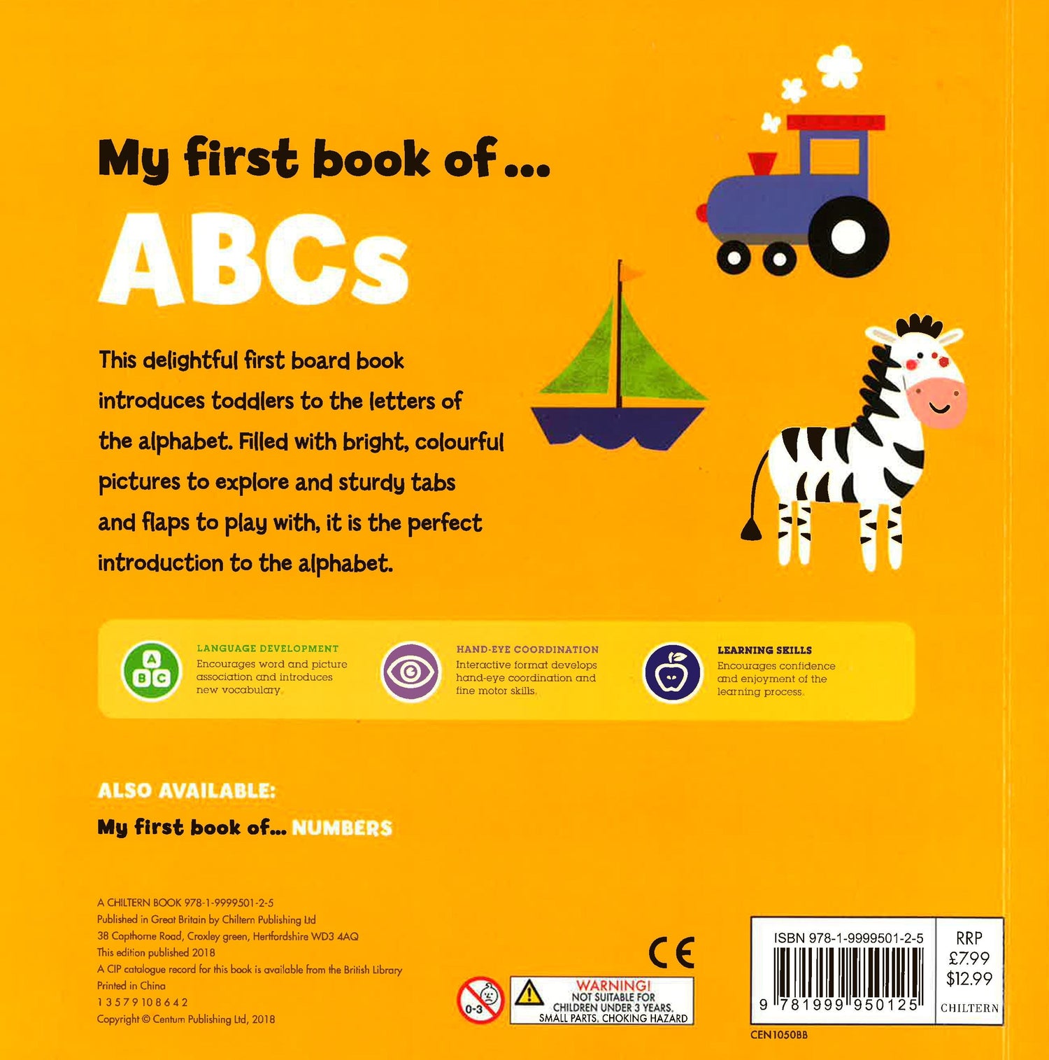 My first book of... ABCs, this delightful first board book introduces toddlers to the letters of the alphabet. Filled with bright, colourful pictures to explore and sturdy tabs and flaps to play with, it is the perfect introduction to the alphabet.
