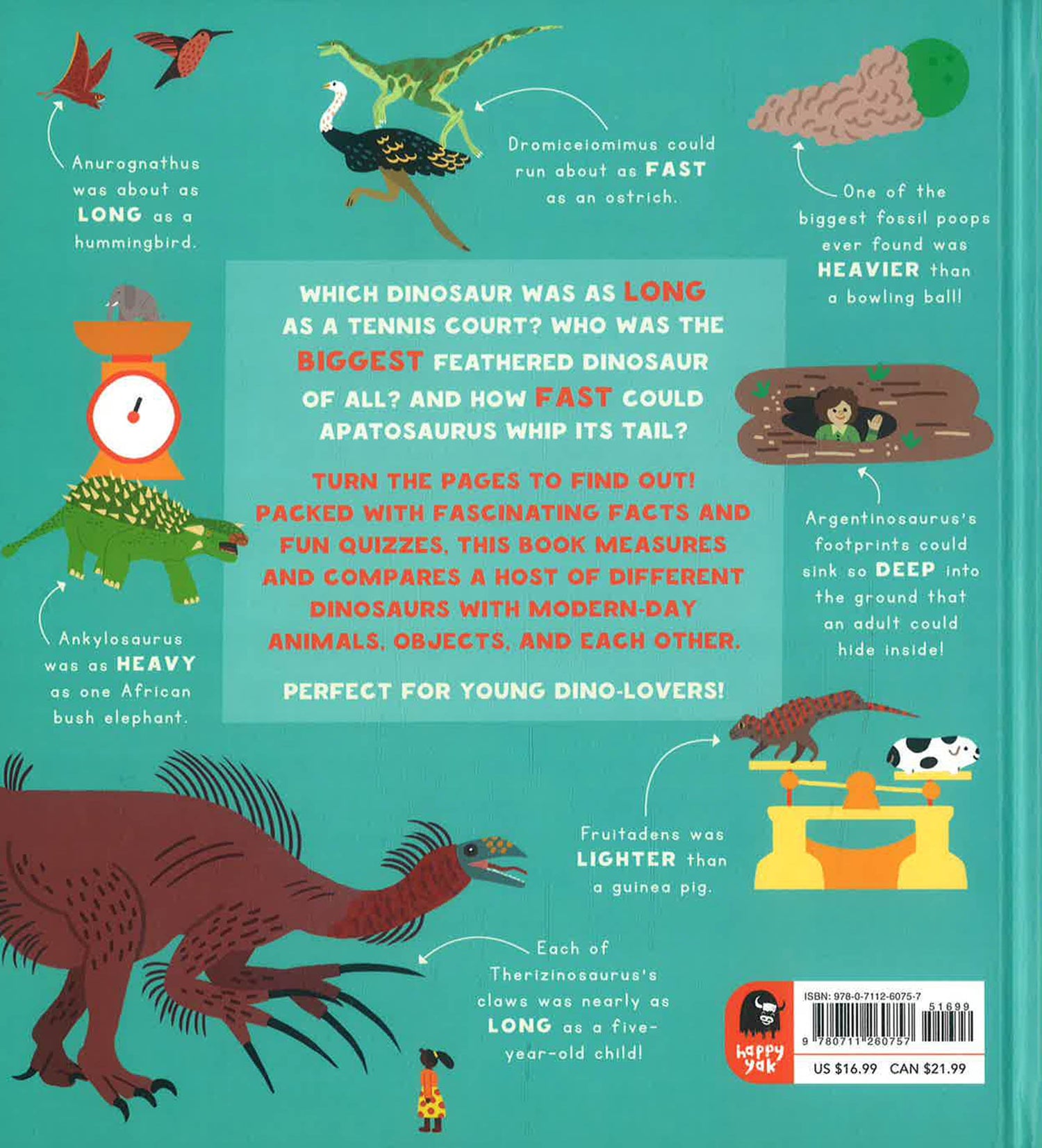 Turn the pages and compare the deadliest dinosaurs with today’s top predators, discover which teeny dinos size up with our pets, and find out just how much Diplodocus ate. You’ll discover how long Therizinosaurus' claws were (as long as you!), and just how fast Apatosaurus could whip its tail (faster than the speed of sound!).