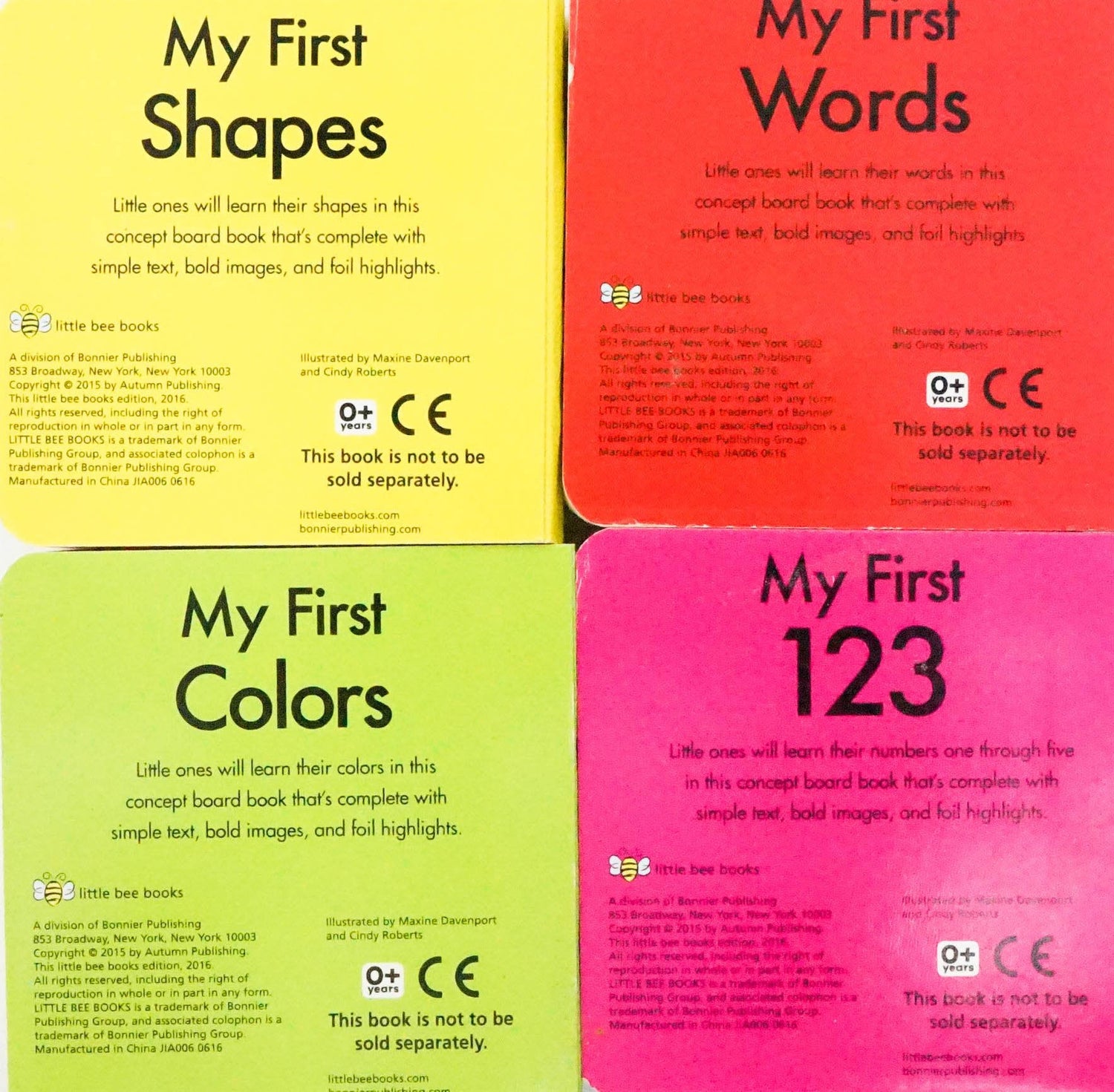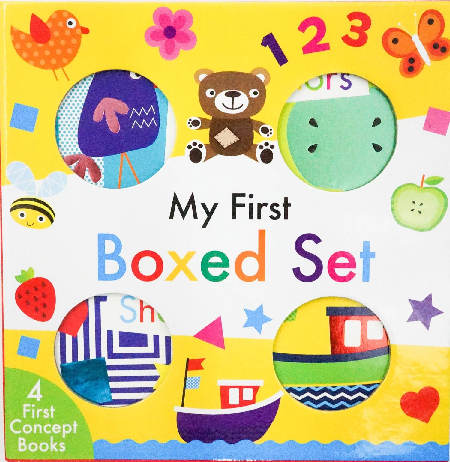 A box set of mini versions of the first four books in the My First Series—Words, Shapes, Colors, and 123!