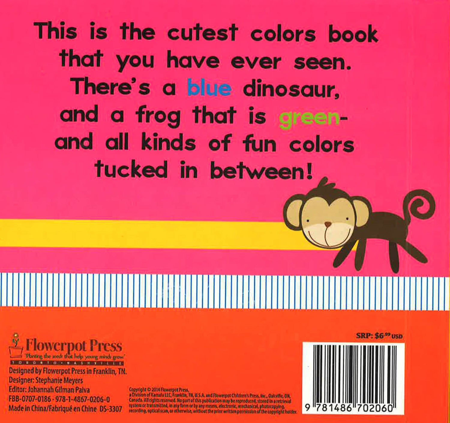This is the cutest colors book that you have ever seen. There's a blue dinosaur, and a frog that is green-and all kinds of fun colors tucked in between!