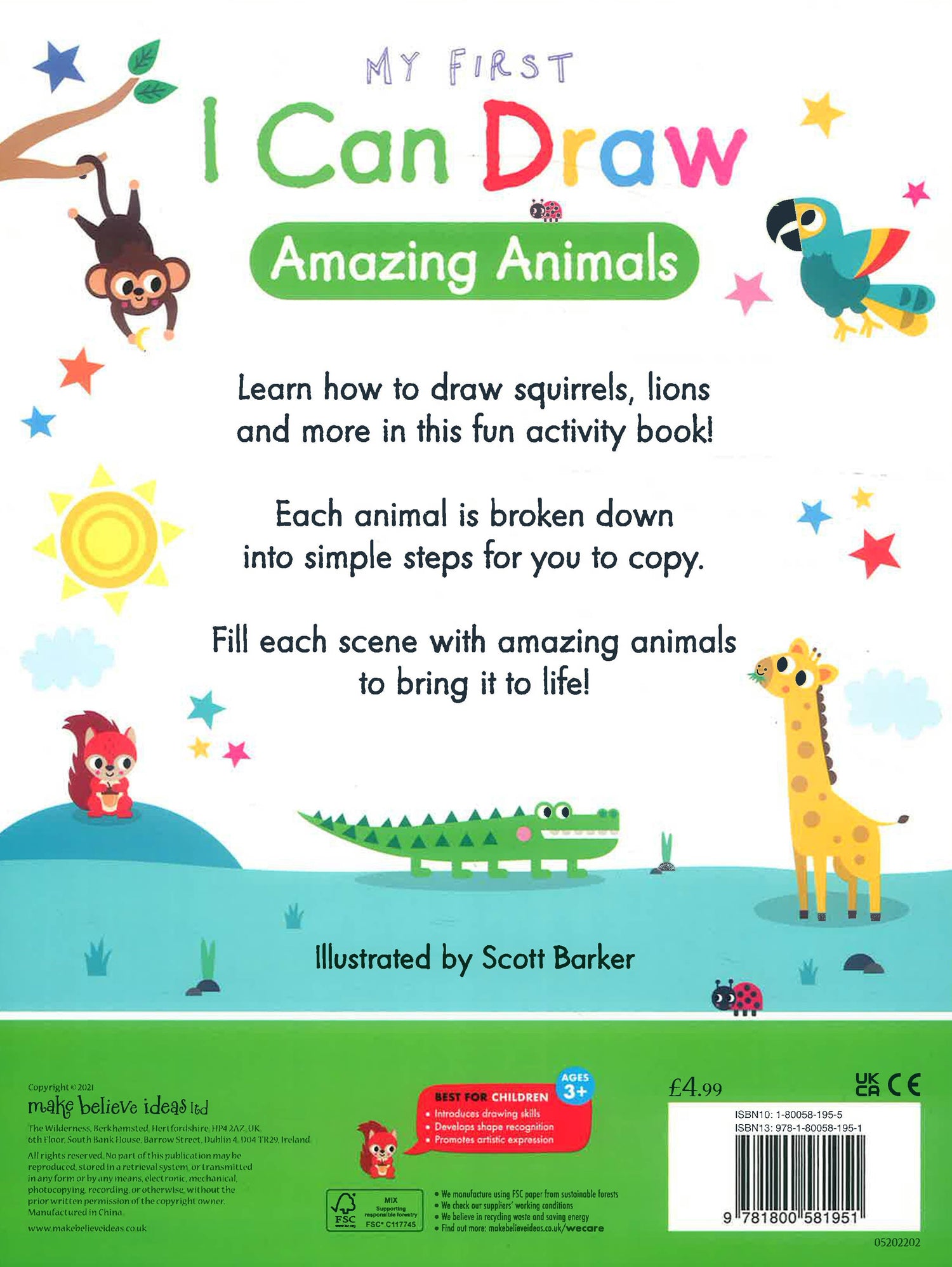 Learn how to draw roaring lions, snapping crocodiles and more in this fun drawing book! My First I Can Draw Amazing Animals introduces children to drawing awesome animals in simple, easy-to-follow steps. Then, practise your drawings by filling the fun scenes at the book of the book. 32 pages of step-by-step drawing instructions Includes practice pages Includes cute, simple illustrations that children will love to copy