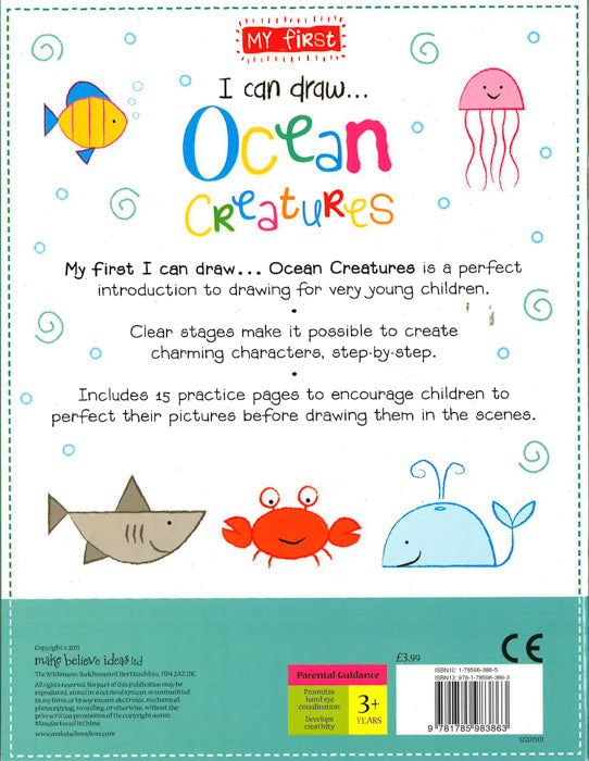 My first I can draw...ocean creatures is a perfect introduction to drawing for very young children! With 15 practice pages to encourage children to perfect their pictures before drawing them in the scenes, clear stages make it possible to create charming characters easily. Draw lots of fun ocean animals with this brilliant activity book. Suitable for those over the age of 3 years.