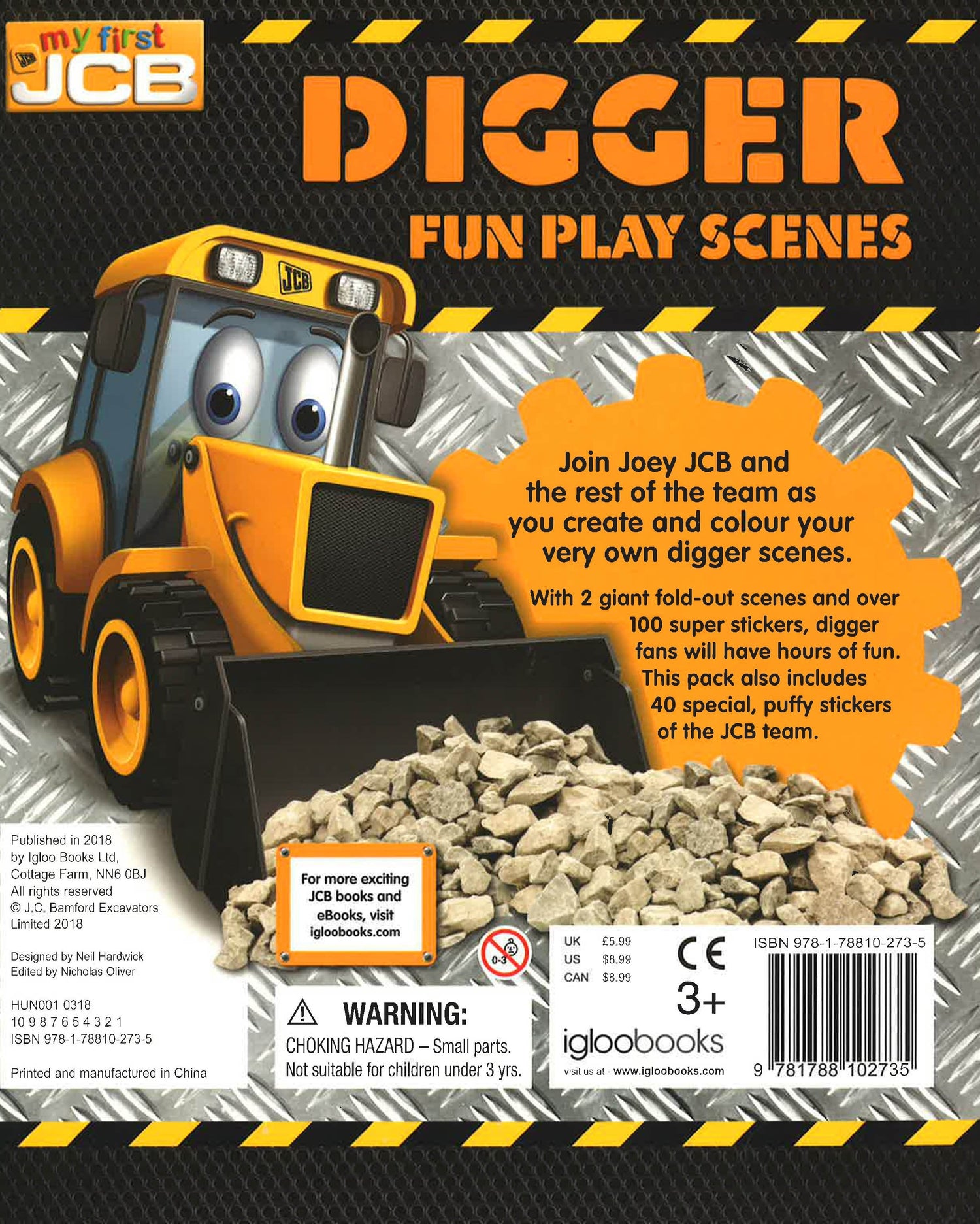 Join Joey JCB and the rest of the team as you create and colour yourvery own digger scenes. With 2 giant fold-out scenes and over 100 super stickers, digger fans will havehours of fun. This pack also includes 40 special, puffy stickers of the JCB team.