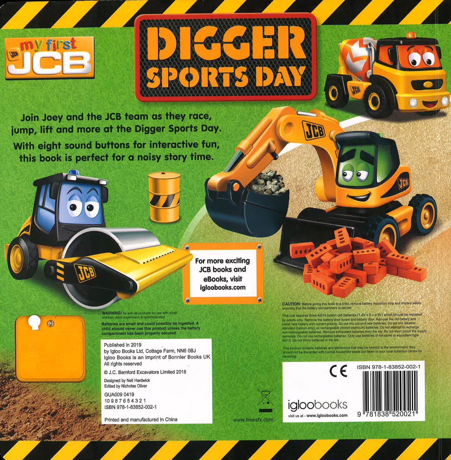 Join Joey and the JCB team as they race, jump, lift and more at the Digger Sports Day. With eight sound buttons, this book is perfect for a noisy time