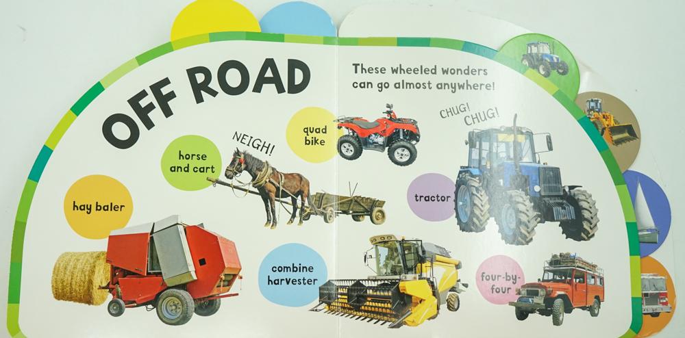 Teach babies about things that go with this curved board book, featuring study tabs to make the pages easy for babies to select and turn. Introduce little ones to vehicle vocabulary by encouraging them to name and describe the photographs on each page. Packed with pictures of cars, planes, trucks and lots more!