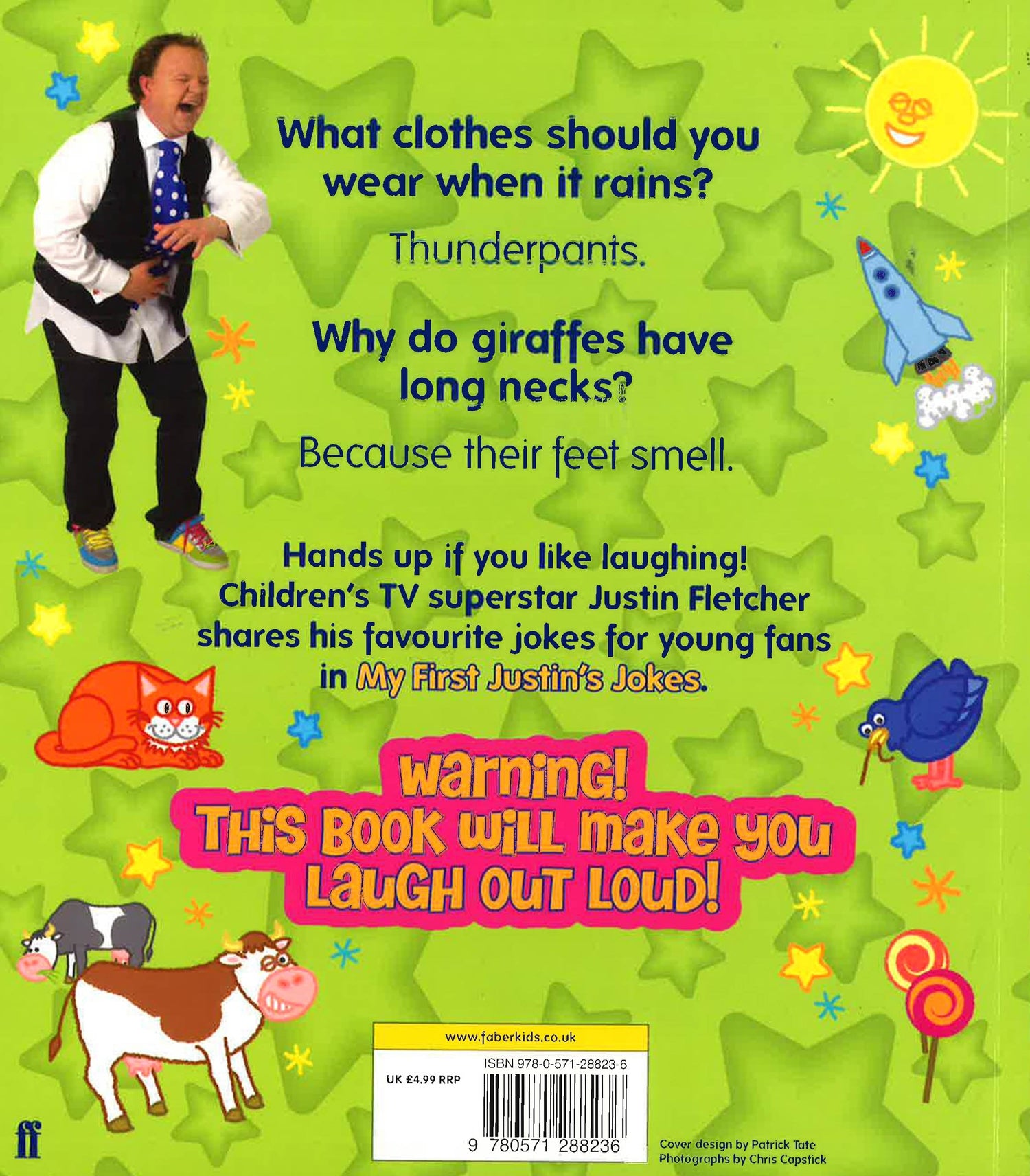 What clothes should you wear when it rains? Thunderpants. What do gorillas sing at Christmas? 'Jungle bells, jungle bells!' Hands up if you like laughing! Children's TV superstar Justin Fletcher shares his favourite jokes for young fans in My First Justin's Jokes. Giggle-tastic, full-colour spreads include hilarious scenes on the farm, at a festival and going to bed - perfect for ages 2+. Warning! This book will make you laugh out loud!