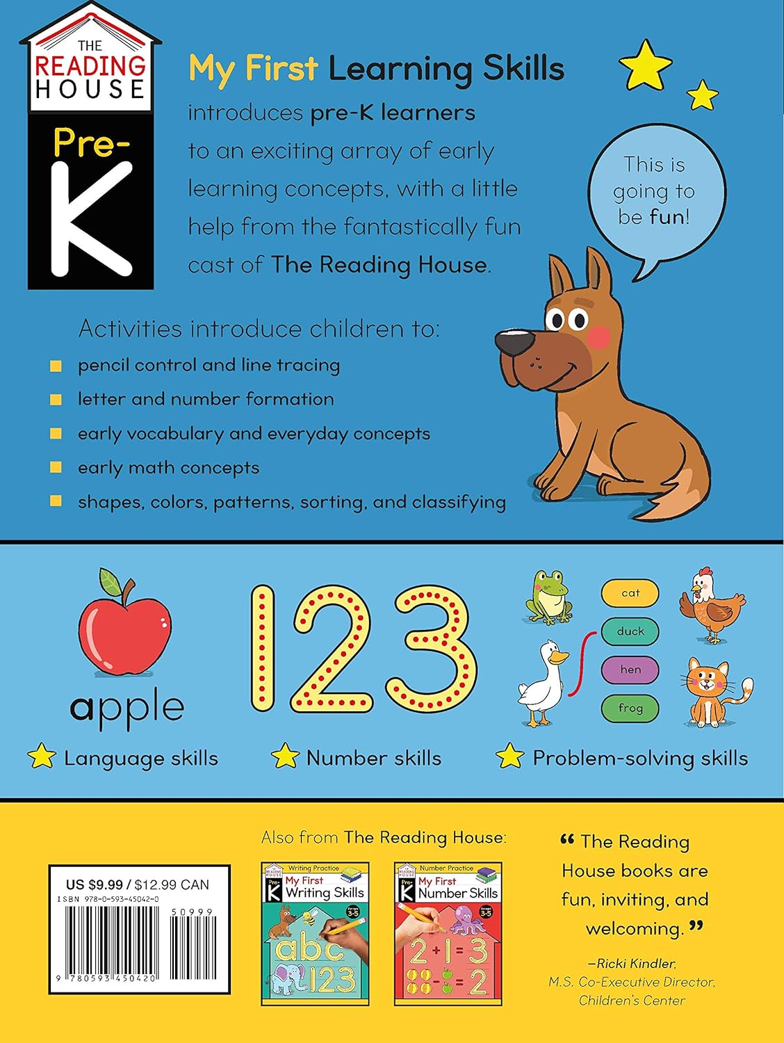 Also available from the Reading House: My First Number Skills (Pre-K Number Workbook) and My First Writing Skills (Pre-K Writing Workbook)