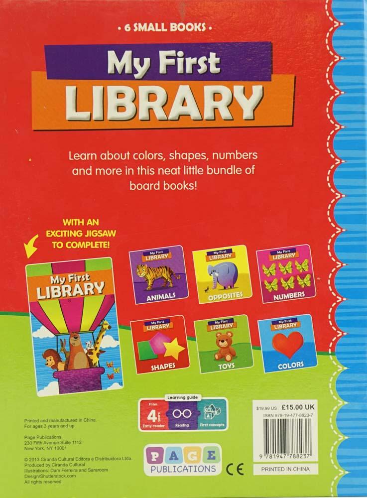 Discover new shapes. Count numbers up to 10. Learn your first words. Explore a rainbow of colors. Meet new animal friends. Find out about opposites! This colorful little library is the perfect introduction to first learning fun. The six easy-to-hold books cover all the important first learning themes that will help children to complete key developmental stages.