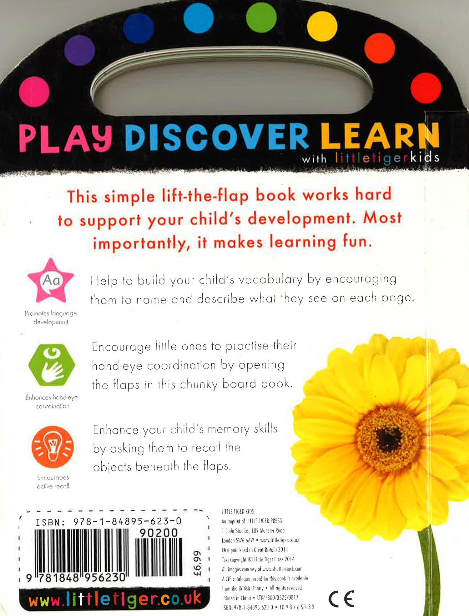 This first lift-the-flap book is a bright and colourful way to introduce preschool children to first words. Packed with photographs of everyday objects and first words, this chunky board book with a carry handle is ideal for developing toddlers' vocabulary. The question and answer format will encourage toddlers to lift the flap and discover the first words hidden beneath.
