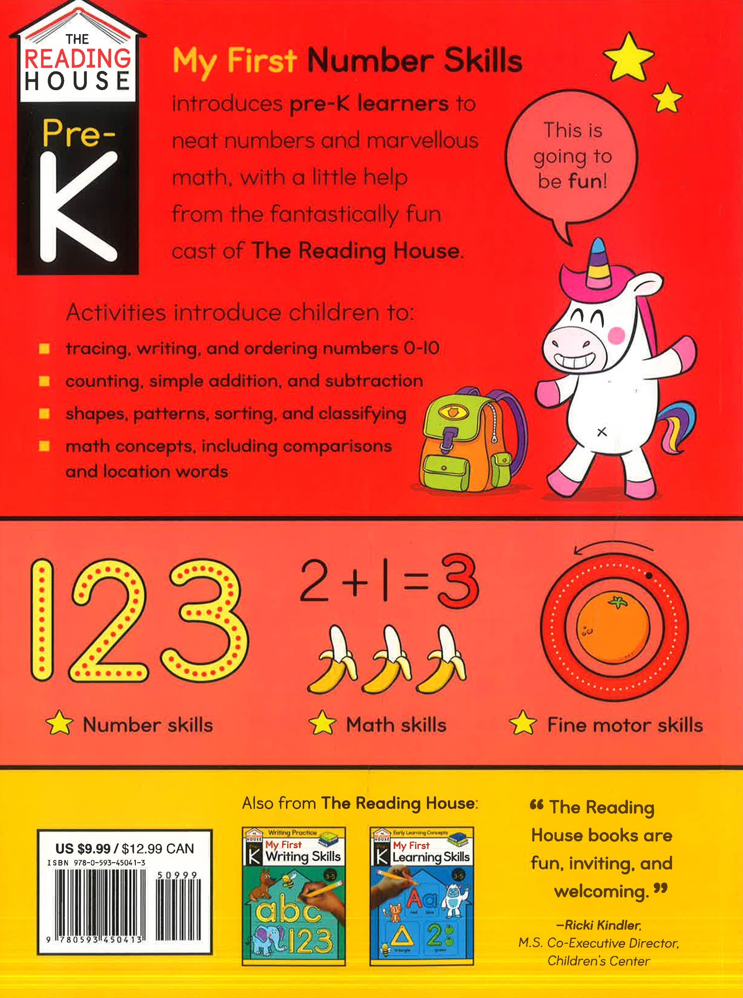 From counting and numbers to simple addition and subtraction, My First Number Skills is a fun introduction to the skills kids need to succeed with math and in preschool. With perforated pages for easy daily or on-the-go use, the dozens of included fun, simple handwriting and tracing activities help cement kids' pen control as it relates to numbers--all led by the charming and adorable animal cast from The Reading House.