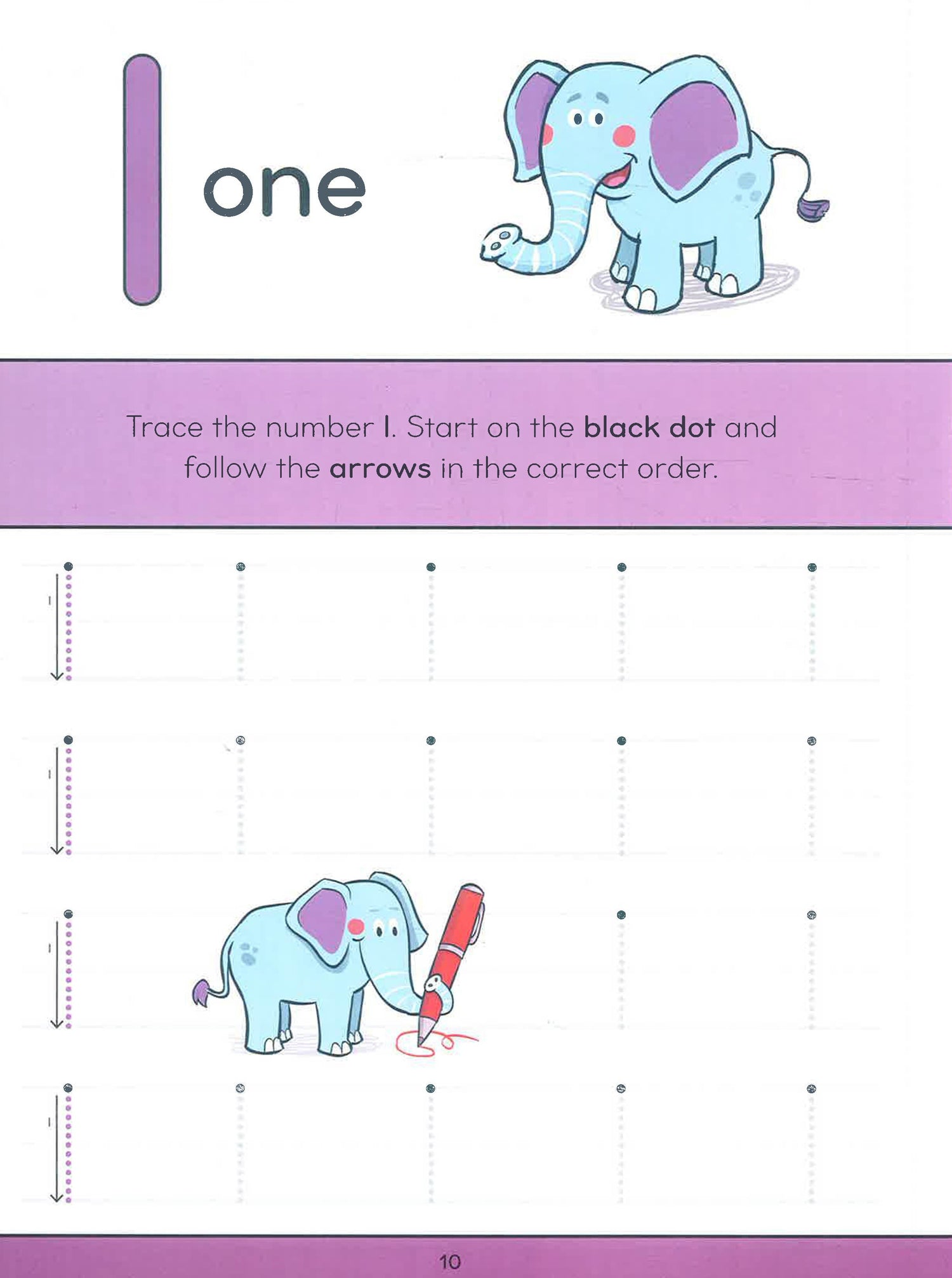 Starting with pencil control and common strokes, children learn to trace and order numbers, then move on to other early math concepts such as comparing quantities, shapes and patterns, and simple equations.