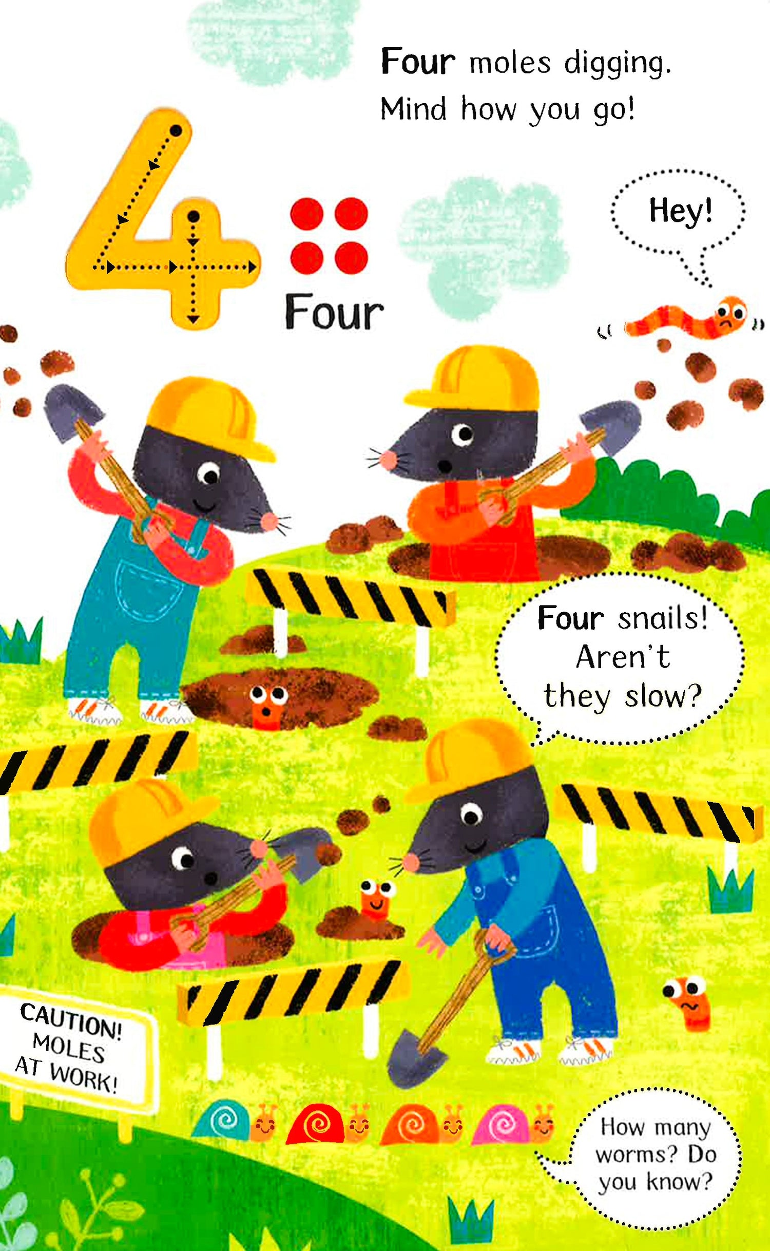 In this beautifully illustrated book, young children can learn to count from 1 to 10 using the cleverly designed finger-trace numbers.